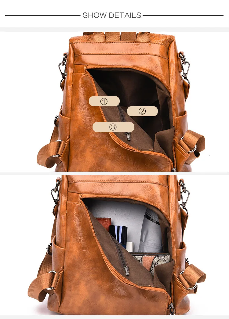 Женский рюкзак с защитой от кражи, мягкая кожаная школьная сумка для книг для девочек-подростков, дорожный ранец