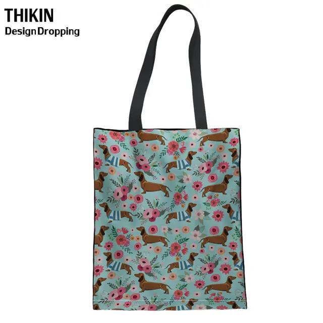 THIKIN Для женщин большая сумка для покупок Симпатичные такса собака печати плечо сумки Повседневная дорожная сумка для хранения на каждый день Применение женская сумка