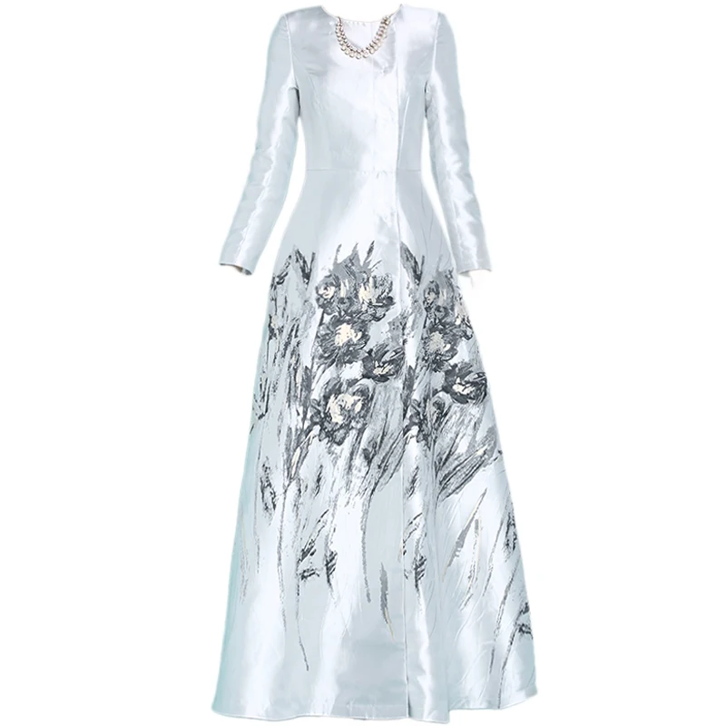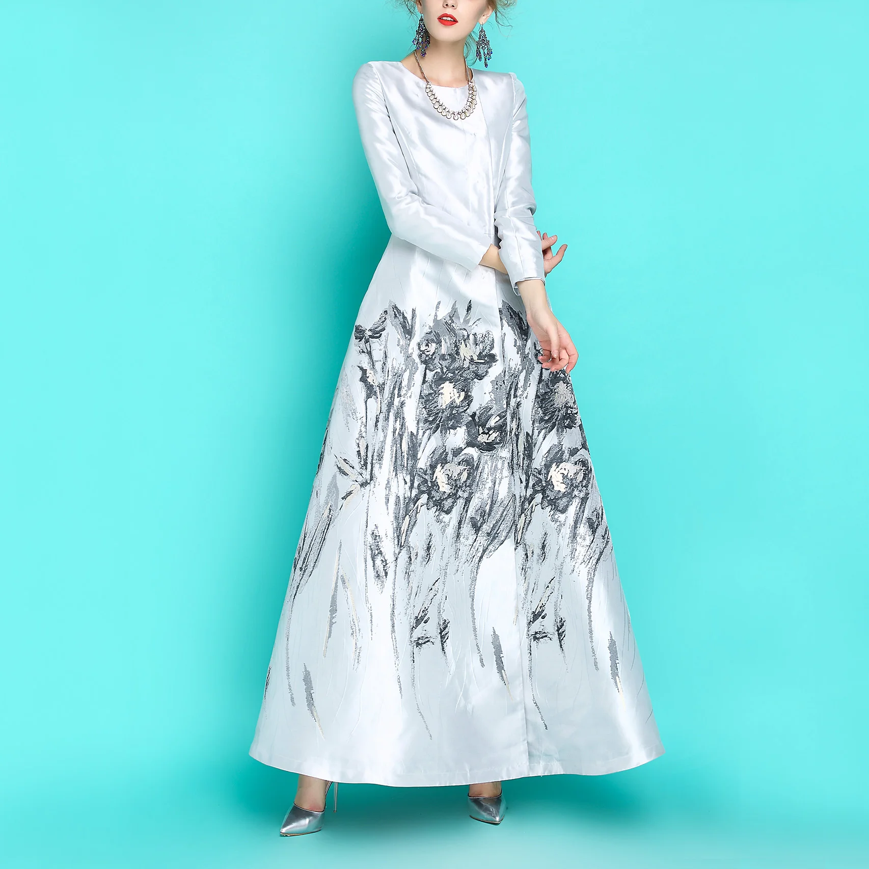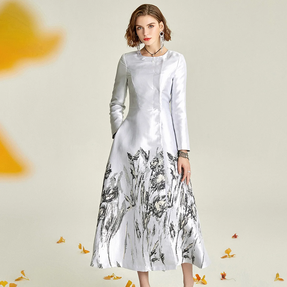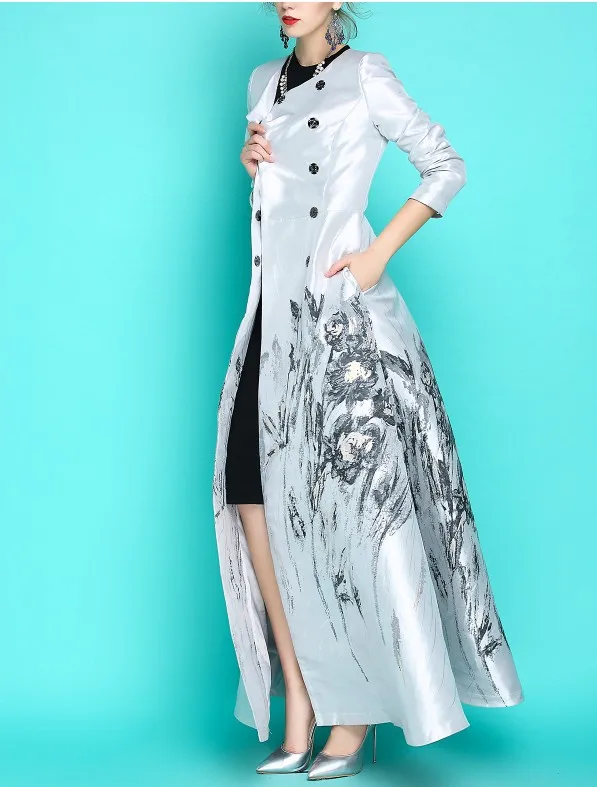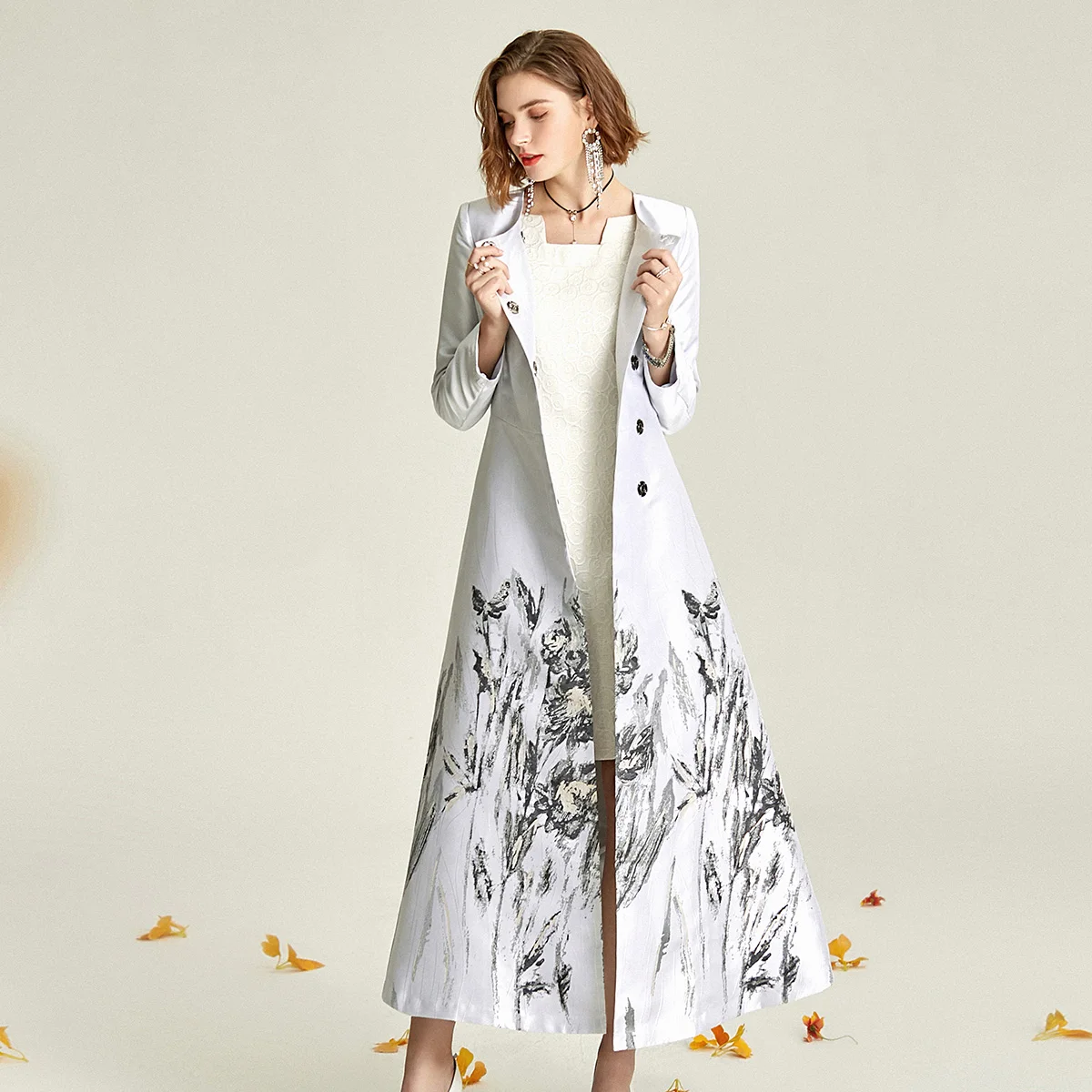 Женский жаккардовый тренчкот, длинная Серебристая ветровка с принтом и вышивкой, весна-осень
