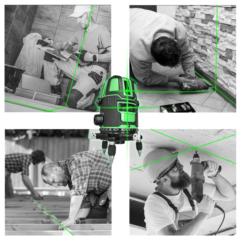 Уровень лазерный с 235 перекрестными линиями, вращающийся на 360 градусов, зеленый, для помещений и улицы