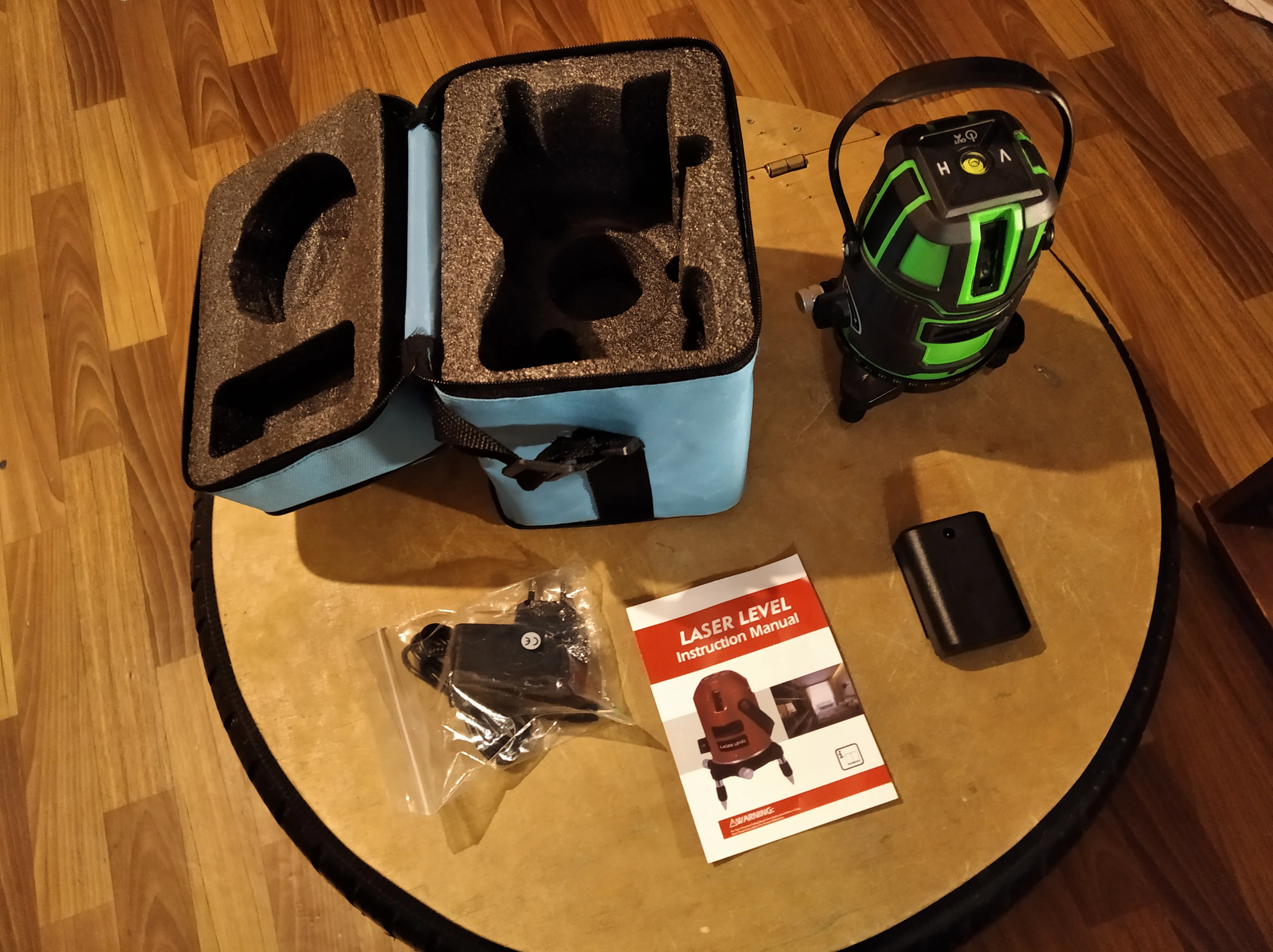пришёл за неделю IML ом. примерил все стены и углы. немного больше по размеру чем ожидал. в комплекте кофорд и зарядное. отдельно включается горизонт и вертикаль.