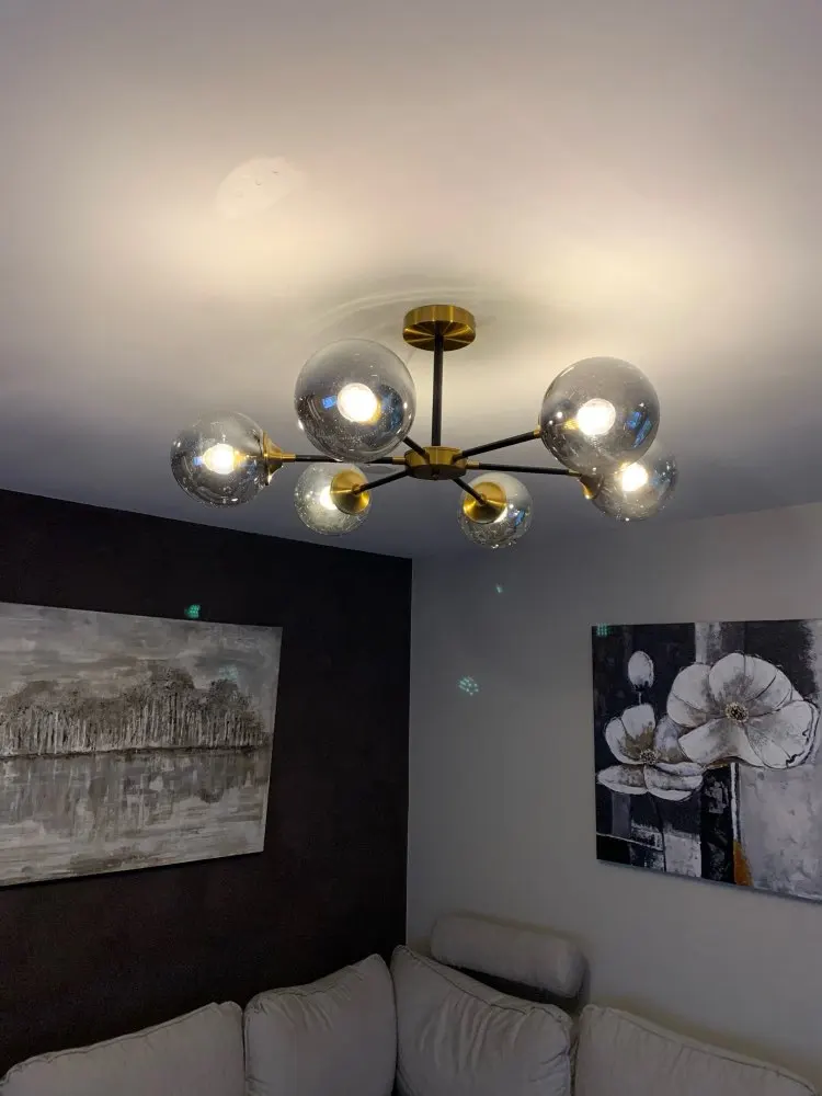 Люстра очень понравилась - все как в описании и выглядит очень прилично. Лампочки только тусклые - 4 вт каждая, темновато, лучше заменить на более мощные. Пришла совершенно целая, хотя коробка явно примята, т.е. продавец хорошо упаковал.