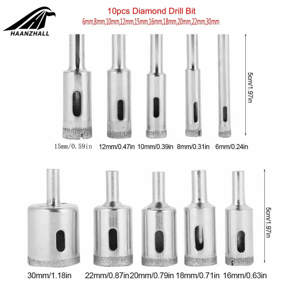 Набор сверл с алмазным покрытием для сверления отверстий в плитке, мраморе, стекле, керамике, горячая Распродажа, 10 шт.