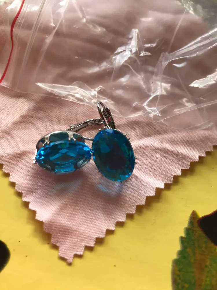 Заказ был отправлен быстро. Сережки не тяжелые, мне бы хотелось чуть крупнее. Это явно не серебро, застежечка хлипенькая,цвет вставки насыщенный. Ну так, на троечку, ну а что может быть за такую цену)))). Носить буду. Продавец положил все в мешочек и приятный бонус салфеточка)))))