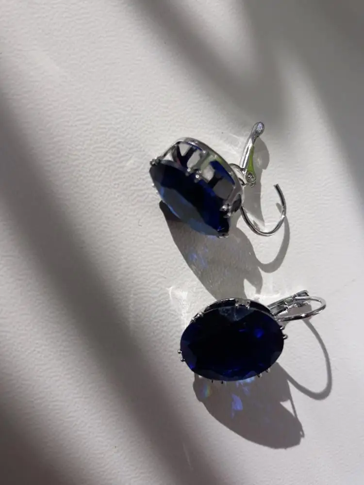 серьги очень хороши, внешне не похожи на бижутерию, точно серебро с сапфиром,, на работе поздравили с покупкой, спросили как долго копила.