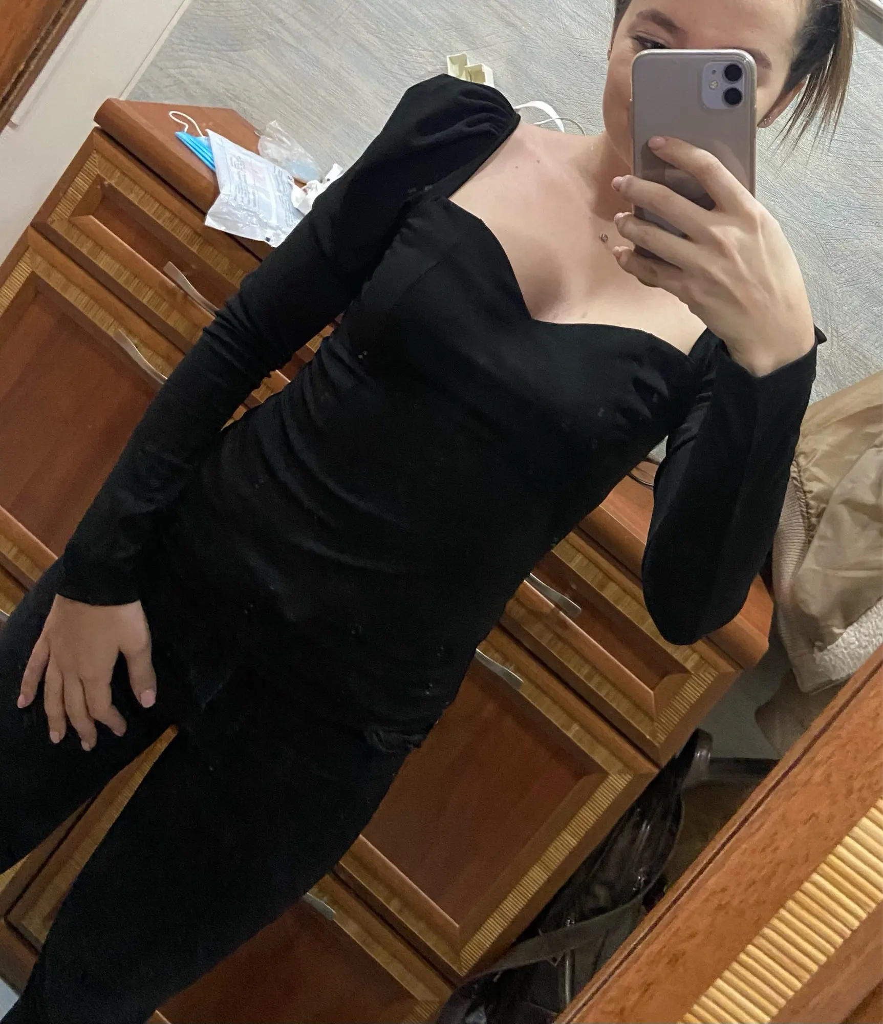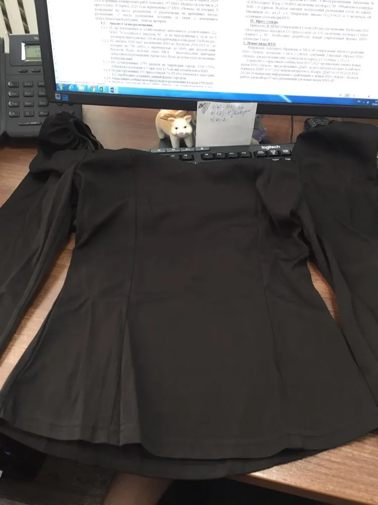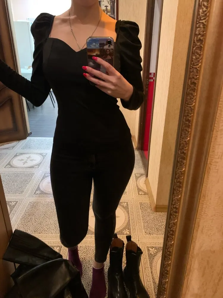 Огонь вещь! При заказе вообще многое не ожидала, заказала чтобы носить с широкими брюками, но в итоге просто влюбилась! Рукава пышные, но у меня постоянно спадают, так что я в основном ношу спущенными. Сама кофта в облипку, материал приятный. На параметры ОГ 90, ОТ 72, плечи 38 подошло идеально. Доставка месяц до Казани