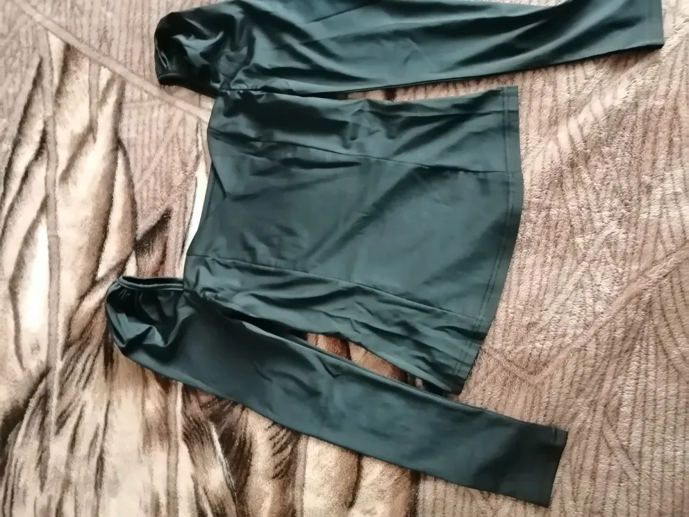 приехал товар довольно быстро 2 с хвостиком недели. синтетический материал ( как в описании) немного тянется. на мой размер я взяла бы по больше на один размер но мне посоветовал продавец этот размер. он слишком обтягивает. есть один нюанс, где вырез в грудной части там подкладка маленькая и она топорщица. нужно её чемно закрепить. товар соответствует описанию, рекомендую.