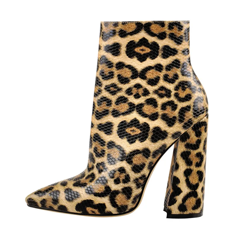 Onlymakerженские ботильоны с острым носком на массивном каблуке 10 см с леопардовым принтом боковая молния на Высоком толстом каблуке; Сезон осень