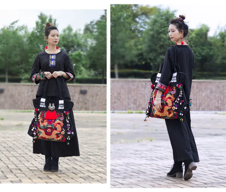 Оригинальные двухсторонние женские сумки, большая сумка с вышивкой, этническая холщовая женская сумка