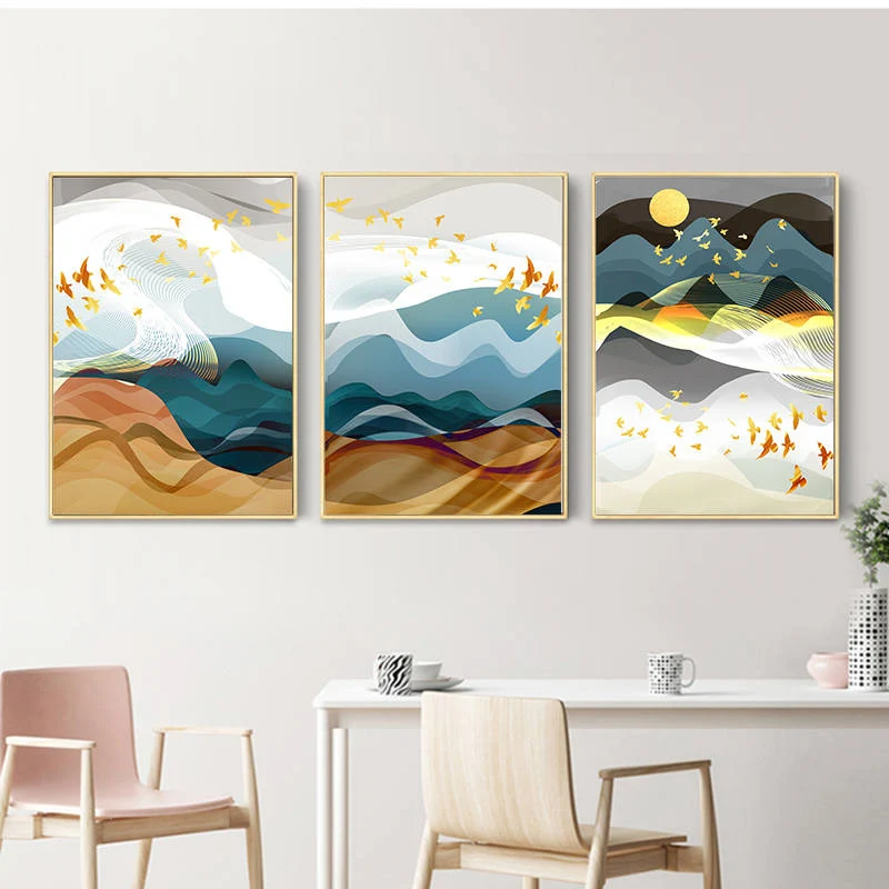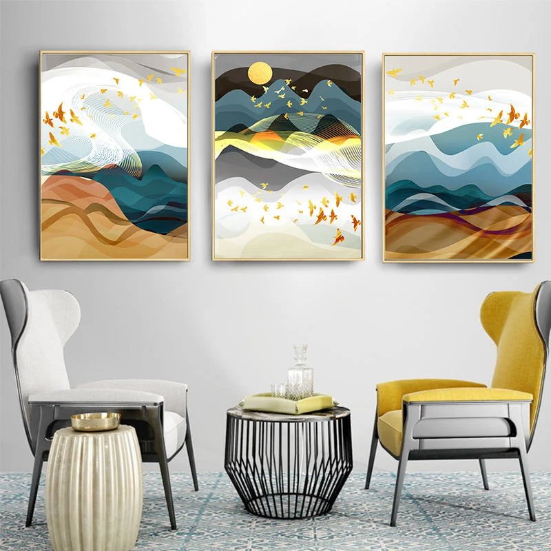 Yumeart абстрактные, солнце, гора, птицы, картины на холсте, скандинавские постеры, печать на стене, современные картины для гостиной