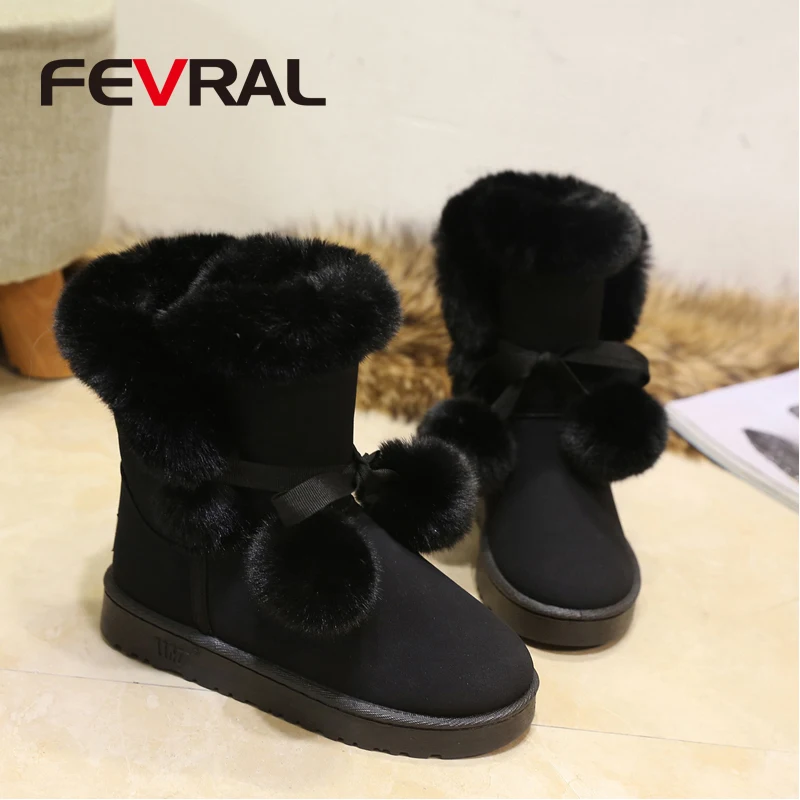 FEVRAL 2022 зимние качественные женские ботинки с круглым носком Модные ботильоны для снега плоские толстые каблуки повседневная обувь женские ботинки с носками