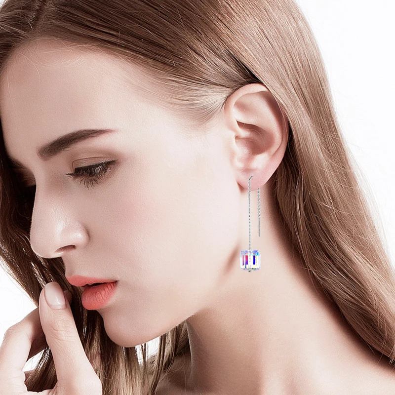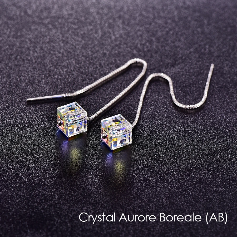 Кристаллы от Сваровски Квадратные бусины Висячие серьги для женщин цепочка пирсинг висячие серьги модные свадебные украшения подарок