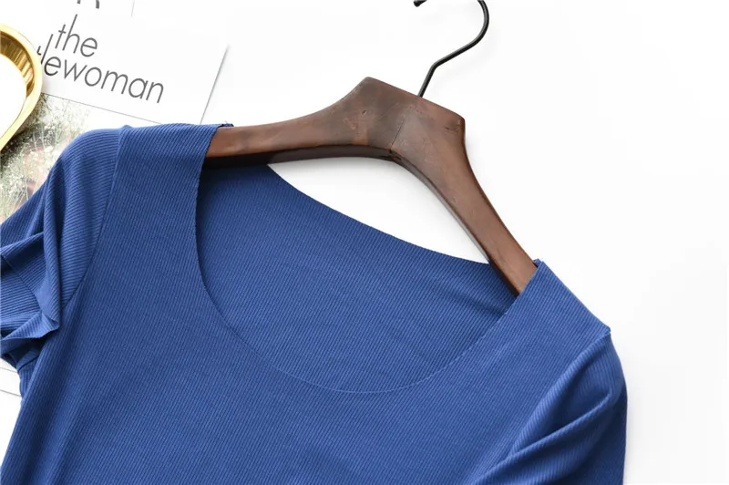 Эластичная хлопковая Повседневная облегающая Базовая женская футболка с коротким рукавом, бесшовный топ, Черная Женская футболка под рубашку, размера плюс