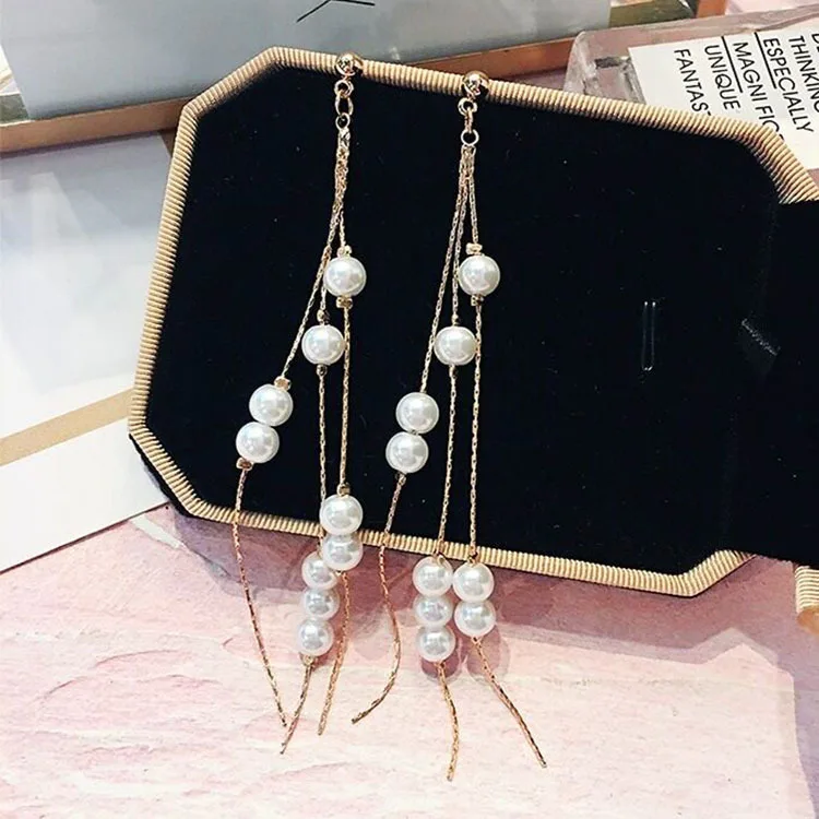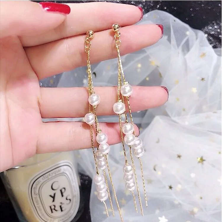 Женские длинные серьги с подвеской из искусственного жемчуга, свадебные серьги на цепочке, 2021