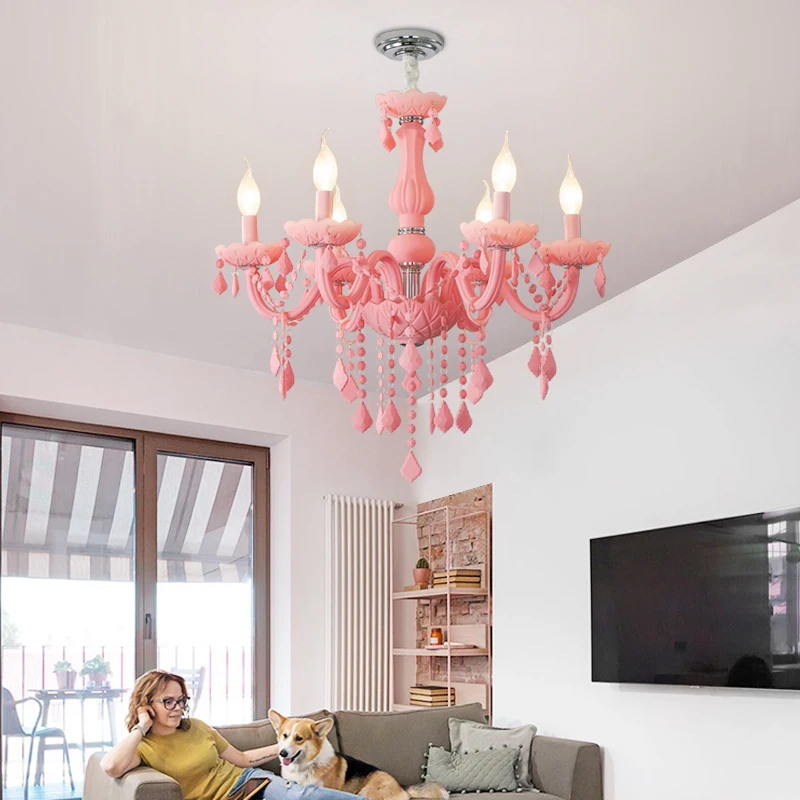 Модная люстра-макарон, розовая Люстра для детской комнаты, спальни,...