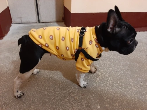 Заказали на щенка французского бульдога ХЛ, велика, но брали на вырост, когда подрастёт и будем понимать параметры будем заказывать ещё, качество очень хорошее, красивая картинка, флисовая подкладка, тёплая, на осень как раз, малышу удобно, не давит, не мешает, советую заказывать, мне очень понравилось
