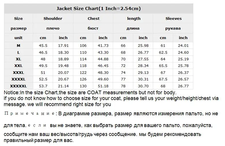 Примечание: 1. Эта куртка Азиатского размера, Азиатский размер меньше. 2. Азиатский размер в 2 раза меньше, чем в США/Великобритании/РФ/ЕС/размерах. 3. Возможны незначительные различия в цвете из-за световых эффектов и яркости монитора. 4. При ручном измерении возможна погрешность в 1-3 см. 5. Если у вас есть какие-либо вопросы, свяжитесь с нами.