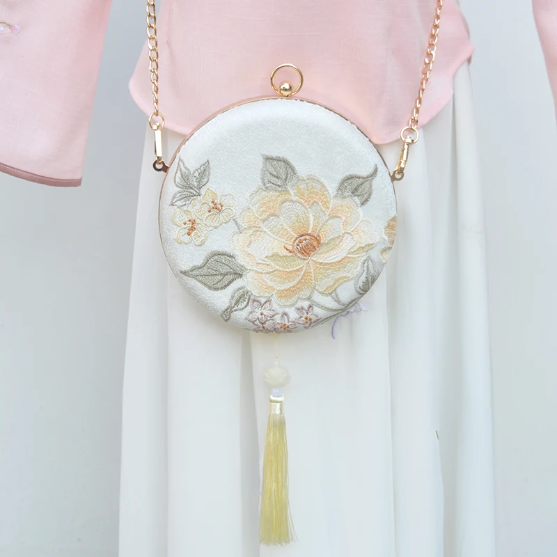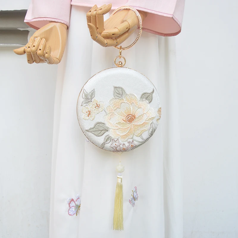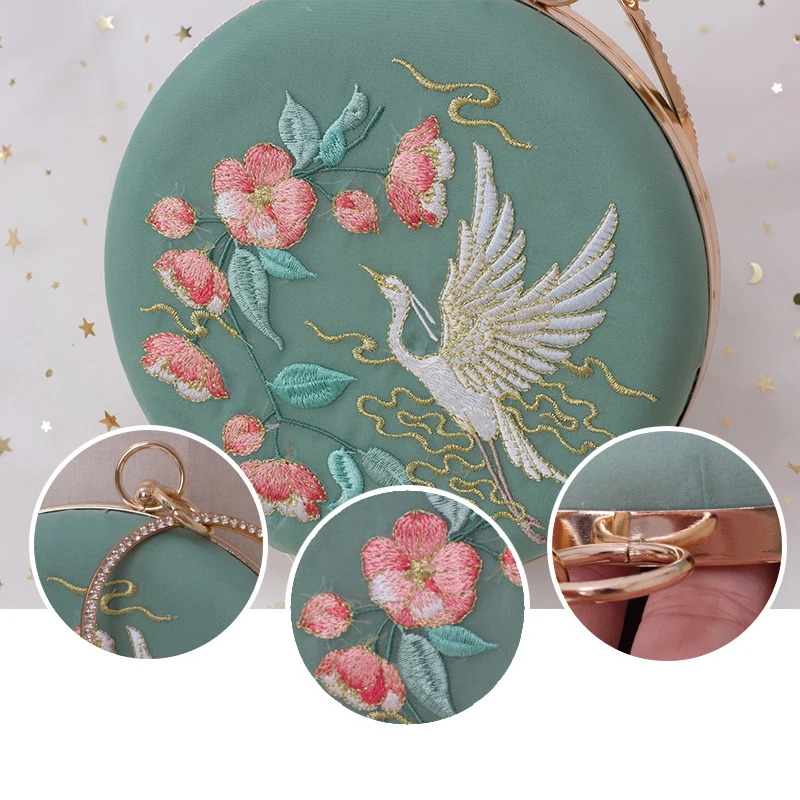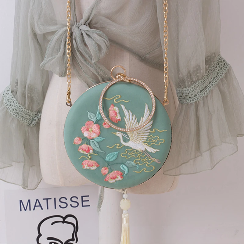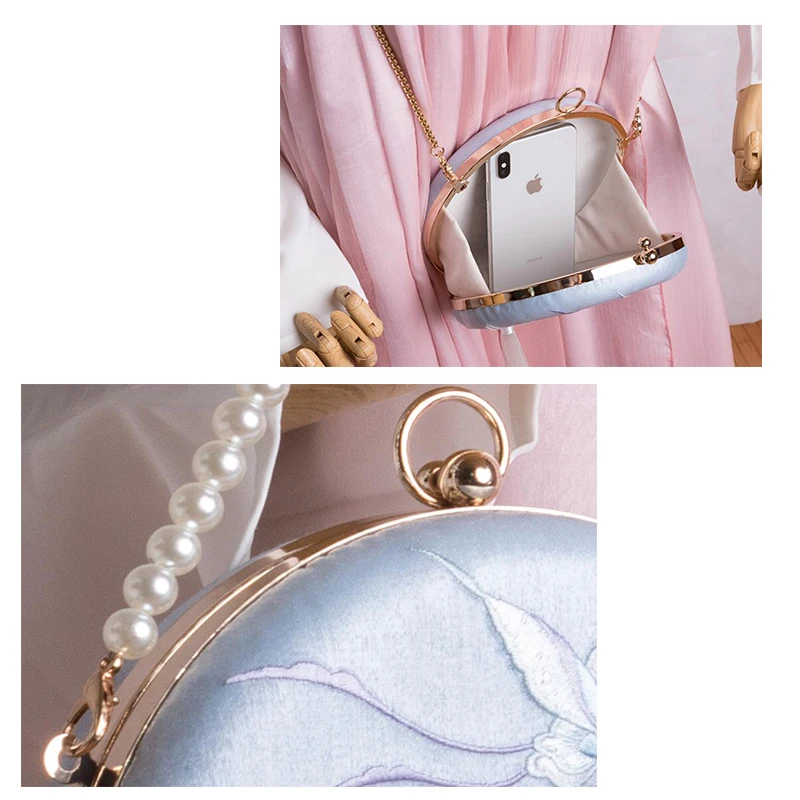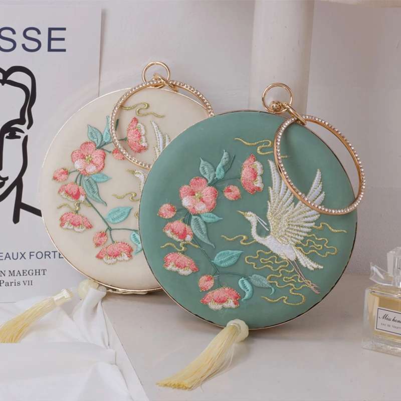 Angelaseek 2021 Новое поступление китайская Птица Цветочный Cheongsam свежий классический в стиле ханьфу круглая сумка-мессенджер дневной клатч ручные сумки