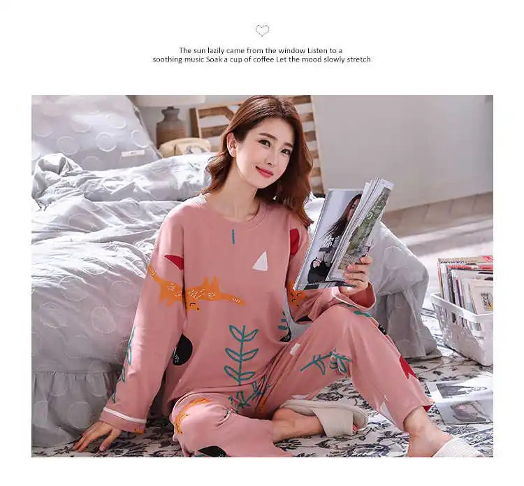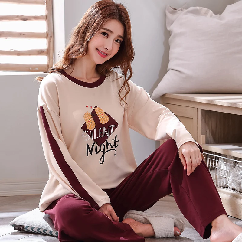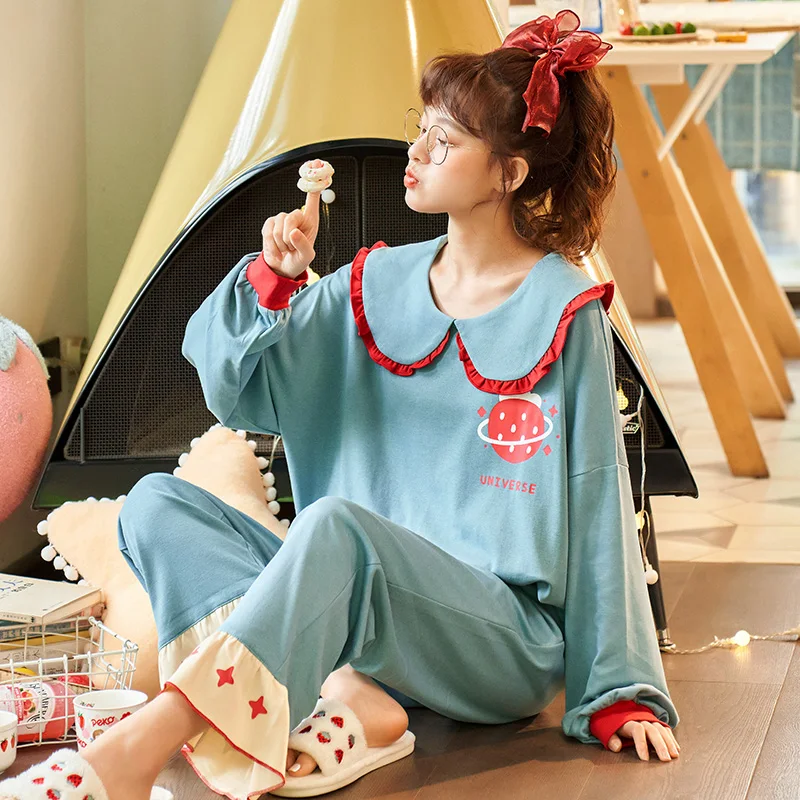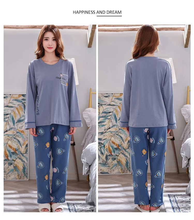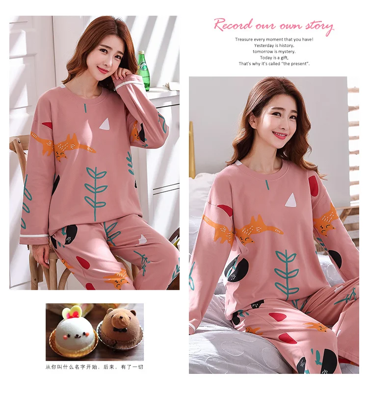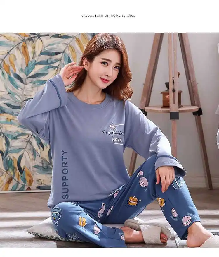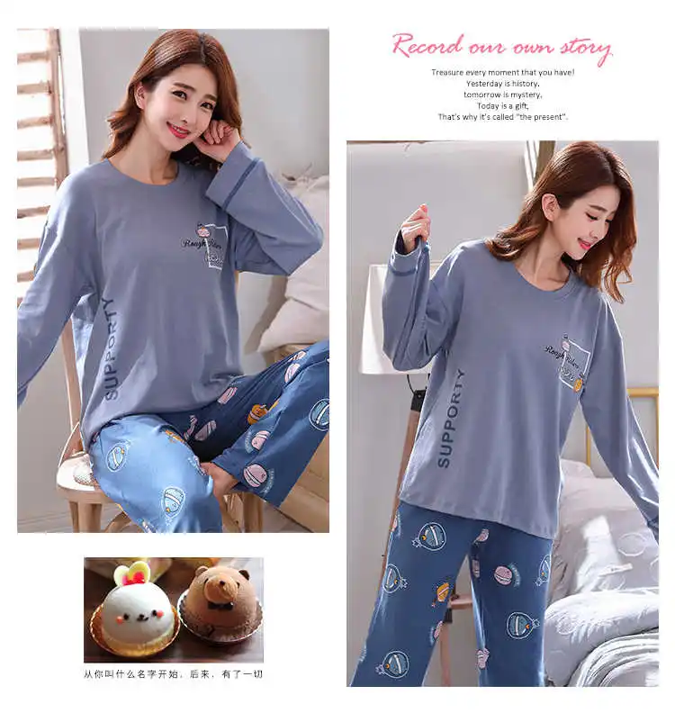 Осенне-зимняя хлопковая мультяшная Пижама, женская пижама, домашняя одежда, пижама с длинным рукавом, Повседневная Домашняя одежда, женский ночной костюм
