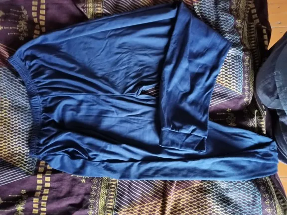 Очень простой комплект. Размерная сетка у продавца странная, на свой 44 верх (т.е. S) размер xl сел хорошо. Штаны сшиты не понять как. Один карман, на 2й ткани пожалели? По ногам легли вплотную, а районе живота мячикообразное пространство образуется. По последним меркам скорость доставки медленная. Успела получить заказы, которые позже оформляла.