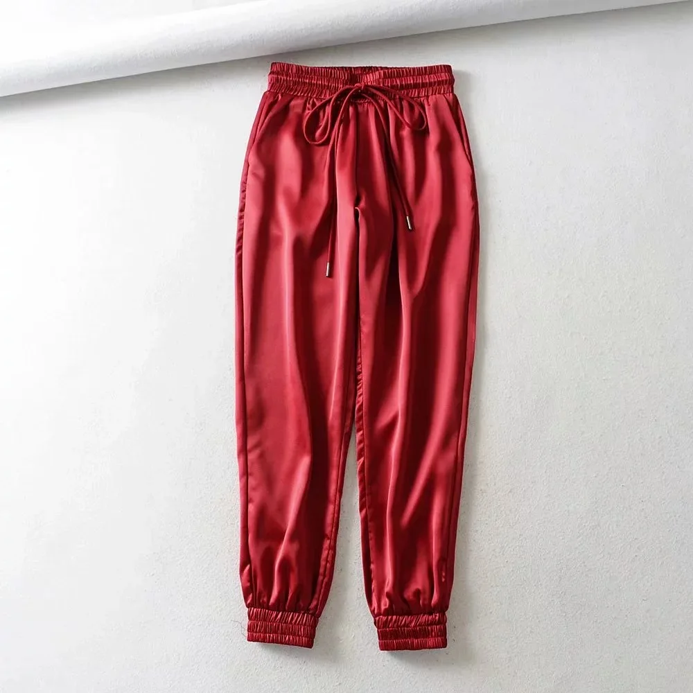 Этот товар хорошо сшит атласные брюки, и это брюки с высокой талией и спортивные брюки для женщин.