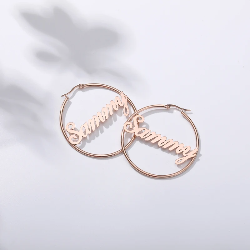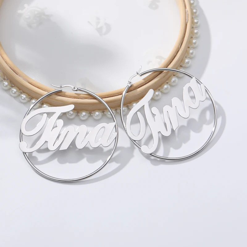 Индивидуальные большие серьги 20-70 мм для женщин, Индивидуальные ювелирные изделия с любым именем, старые английские серьги из нержавеющей стали, круглые серьги, подарок для женщин
