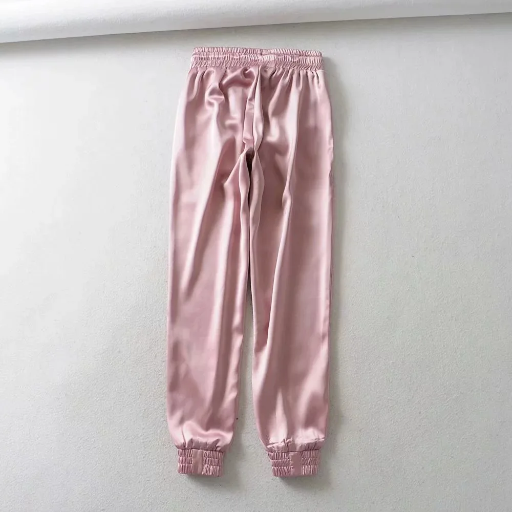 Женские спортивные штаны, черные спортивные штаны с высокой талией, розовые спортивные штаны, зеленые атласные штаны, зима 2021