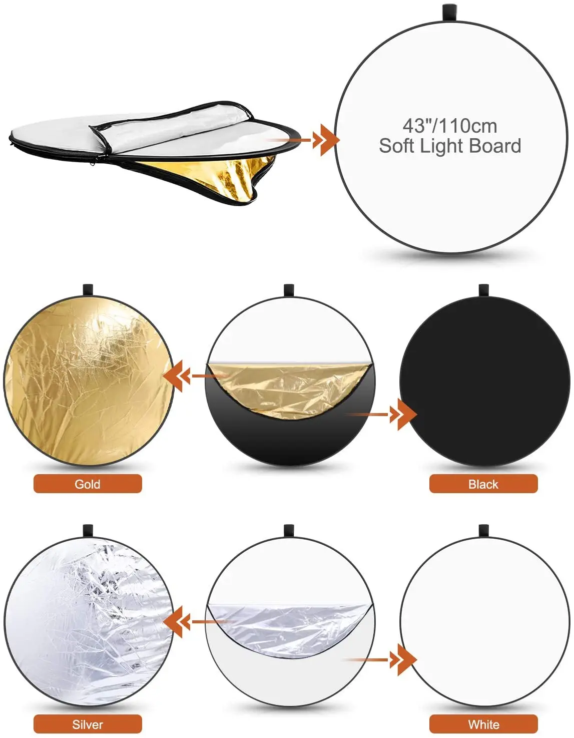 Светильник в 1, складной отражатель для фотосъемки, 80 см