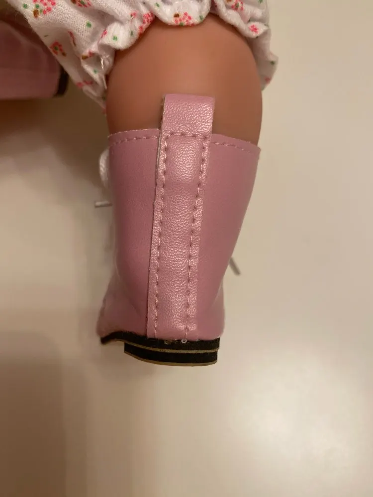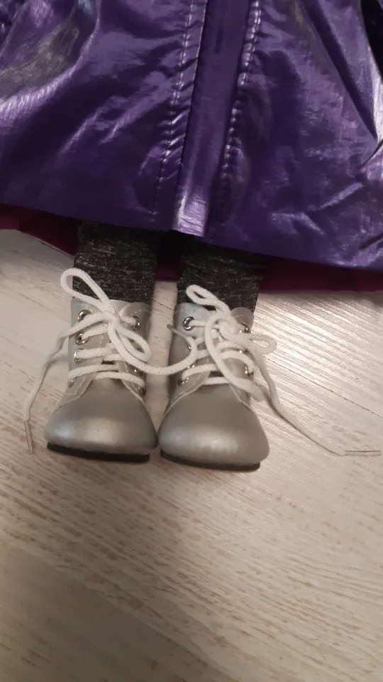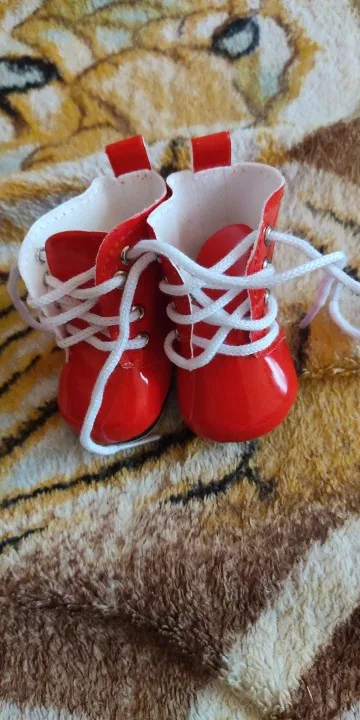 Ботиночки сделаны качественно. Но! Хотелось бы, чтобы указывался цвет, а не номер. Т. к. все мониторы по-разному передают цвета. На моём мониторе они светло-бежевые, а в реальности серые. Ещё важен не размер куклы, а размер обуви, т.е. длина и ширина стельки. У этих ботинок длина подошвы 6,6 см, Я думаю, и стелька такая. Для Дисней аниматор велики, особенно в подъёме. Смотрятся некрасиво. Для Сар-Ханн от Гётц - малы, у них стопа 7 см. А ботинки по внешнему размеру 7 см. В моём случае подошли винтажной немочке, (размер стопы 6,2 см). Эта информация для покупателей, а продавцу для точного описания. Поскольку обувь хорошая и не очень дорогая, поставила все 5-ки. Продавцу спасибо. И шнурки, да, уж очень длинные. А если их обрезать и кончик смазать горячим клеем, а когда чуть остынет, обмять до нужной толщины. Но сначала потренироваться на старом.