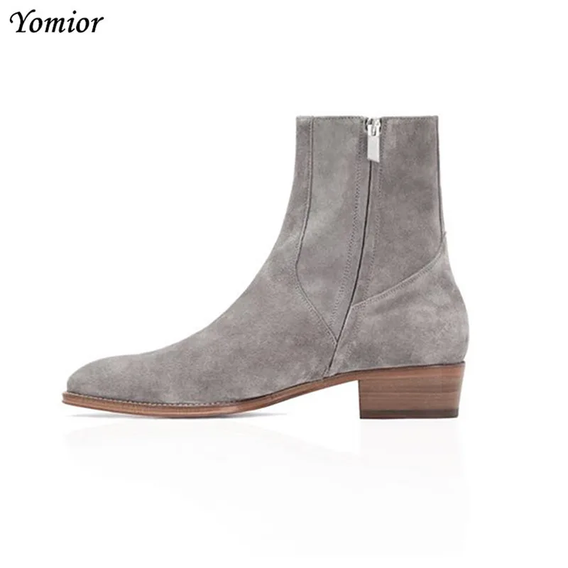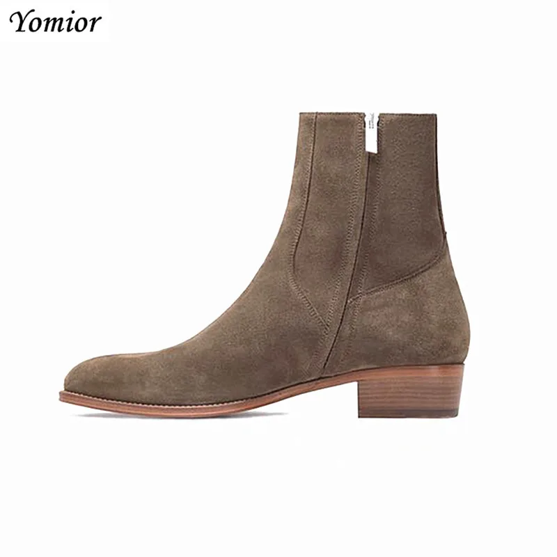 Мужские Винтажные ботильоны Yomior, модные классические ботинки челси из натуральной яловой кожи, с острым носком, на молнии, в итальянском стиле, большие размеры