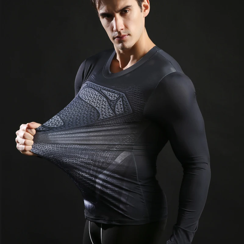 Футболка мужская компрессионная, с 3D-принтом, быстросохнущая, с длинным рукавом