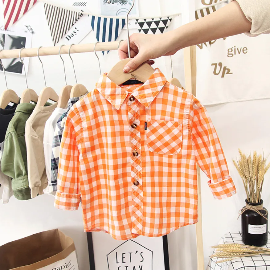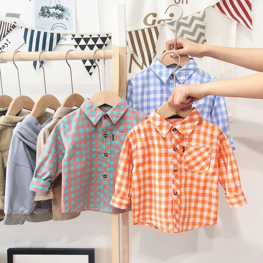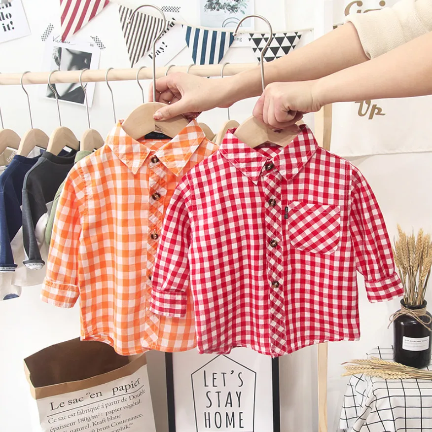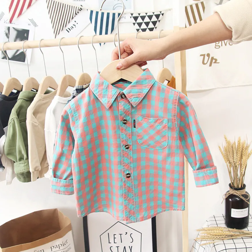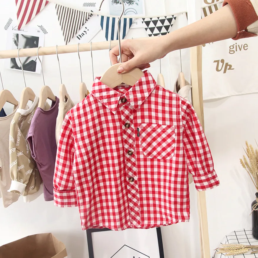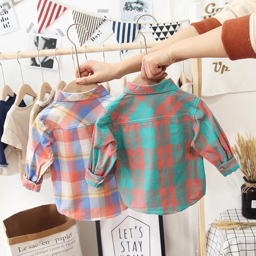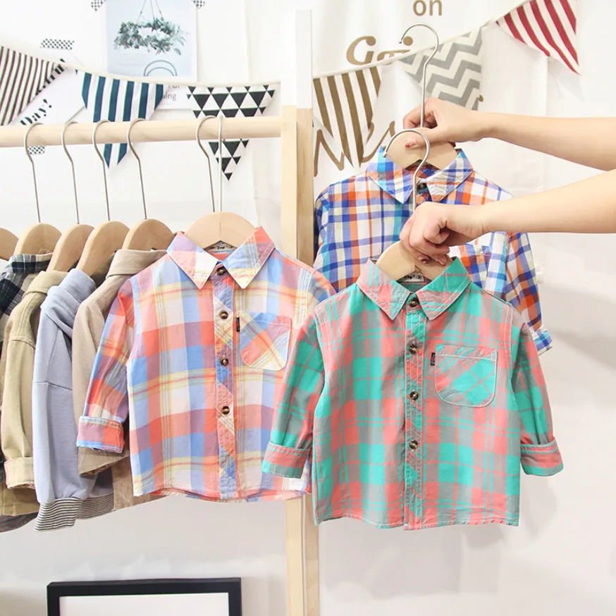 Рубашки для мальчиков на весну и осень, Повседневные детские блузки с длинным рукавом для девочек, одежда для малышей, клетчатая рубашка для маленьких мальчиков, подарки
