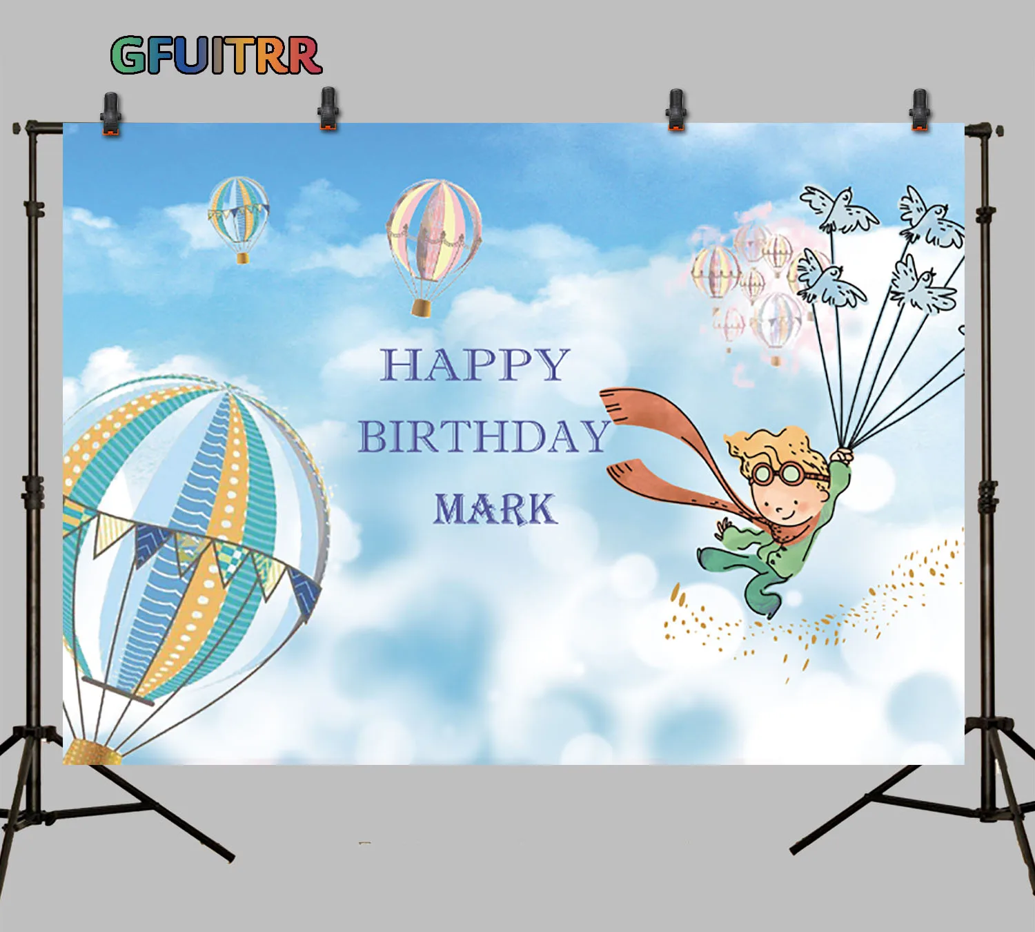 Виниловый фон для фотосъемки мальчиков с изображением Маленького принца, голубого воздушного шара, неба