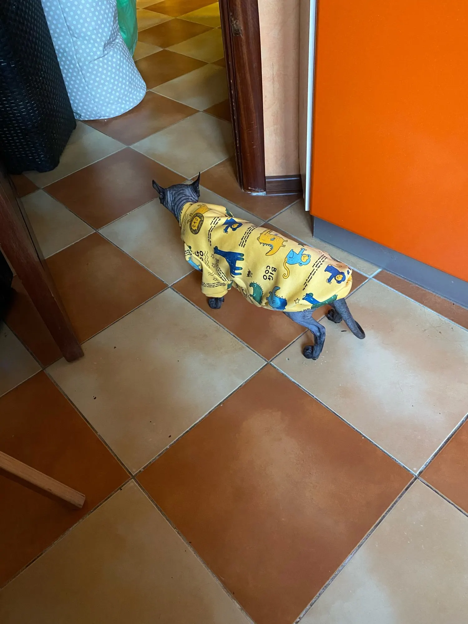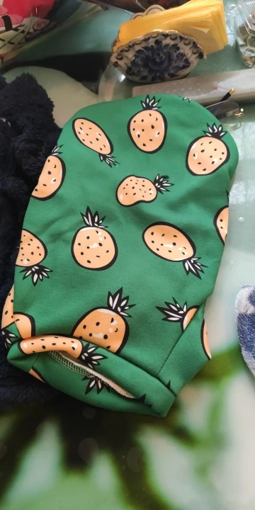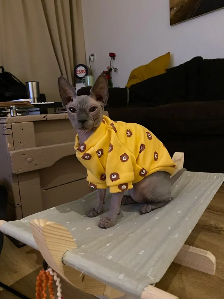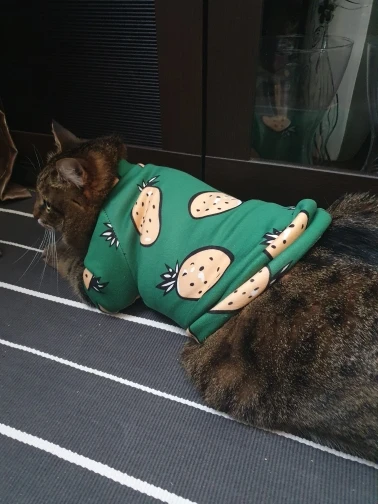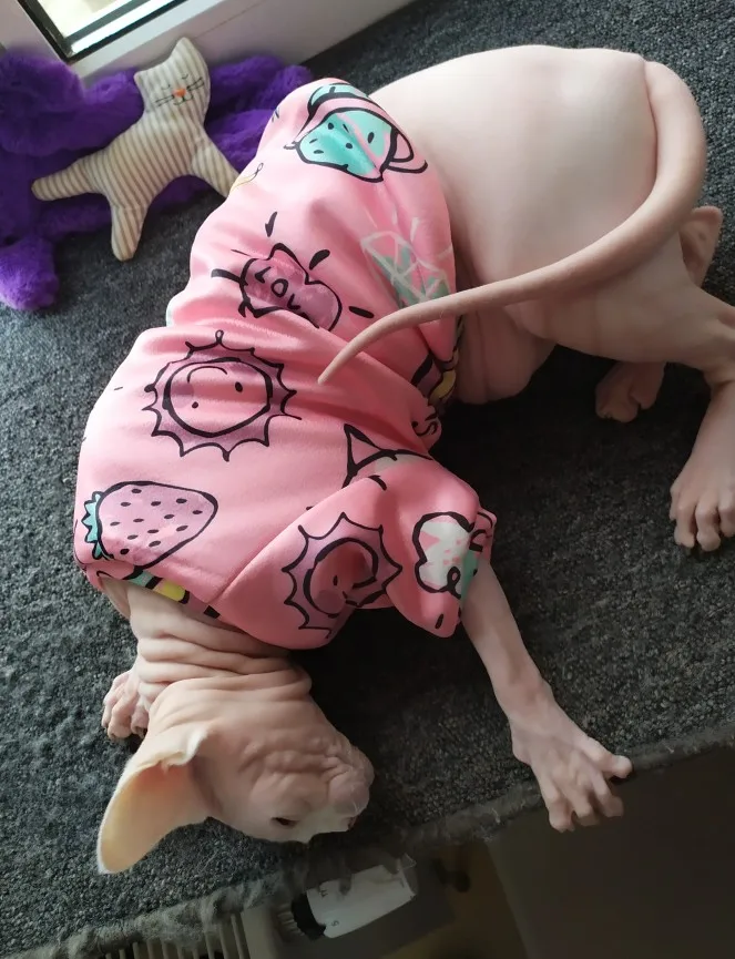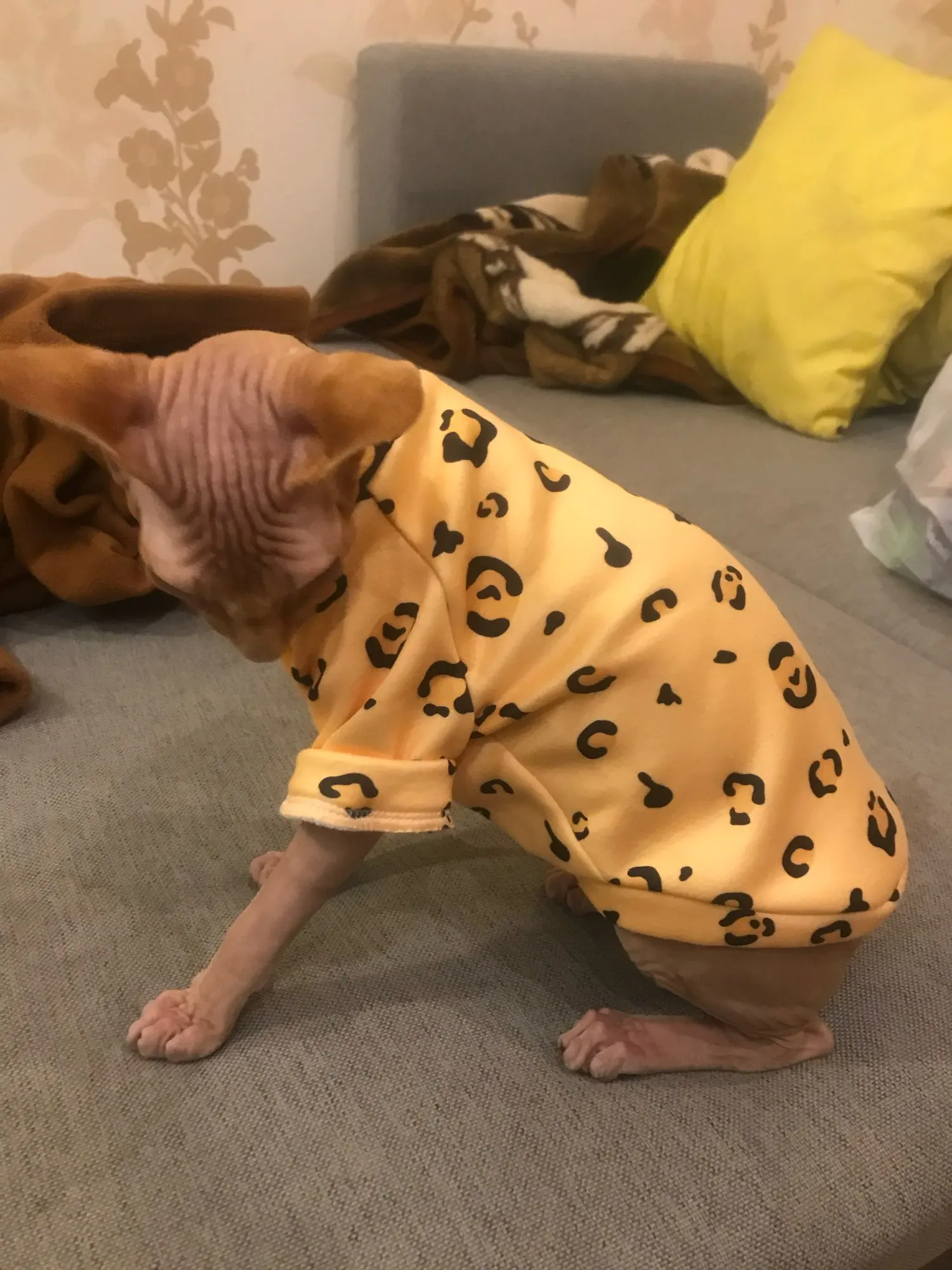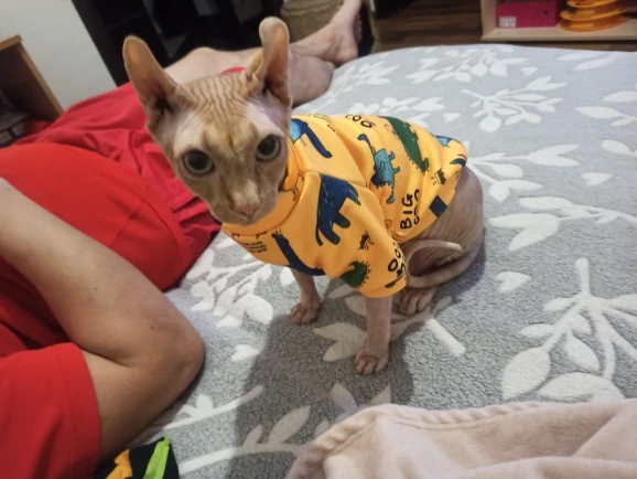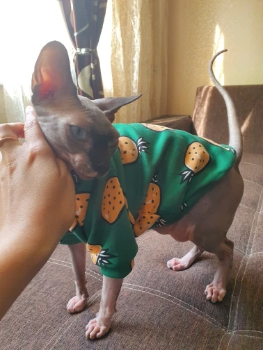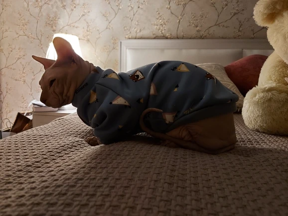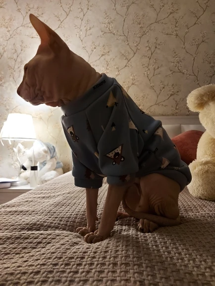 Очень красивая плотная ткань, настоящая фуфайка. Очень красиво и тепло для sphynxjes, очень быстрая доставка