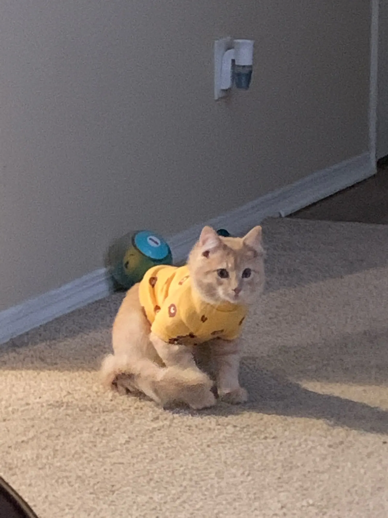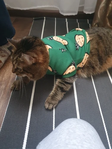 Хорошо подходит моей кошке, но должно быть на один размер меньше, но это не подходит для его живота.
