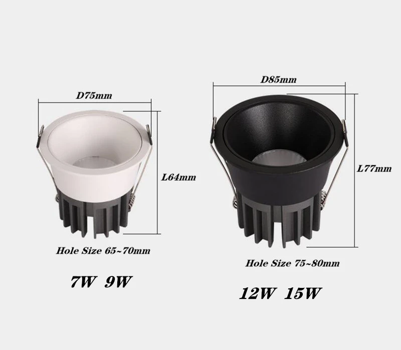 Вход Напряжение: AC85-265V/110V/220V 50/60HzМощность: 7 Вт, 9 Вт, 12 Вт, 15 ВтРегулировка яркости: ДаИндекс цветопередачи (CRI):>Ra85Угол луча: 24 °Светодиодный чип: чип COB (Epistar)Световой поток: 95 ~ 110 лм/ВтТемпература: от-25 до 45 °Цветовая температура: теплый белый:(2700K-3000K); Натуральный белый:(4000K-4200K); Холодный белый:(6000K-6500K)Срок службы: 50000 ~ 80000 часовГарантия: 3 годаМатериал: литье алюминияПроисхождение: Гуандун (Китай)