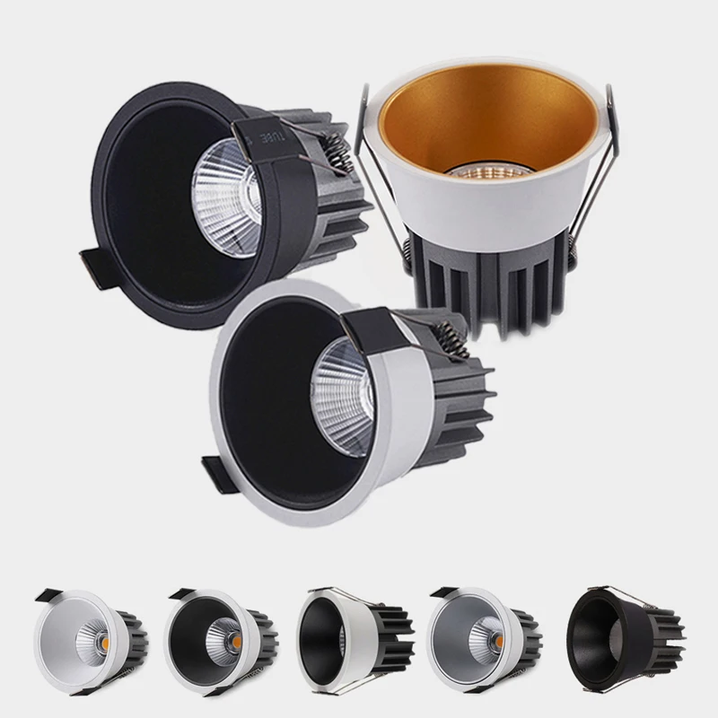 Утопленный антибликовый COB светодиодный светильник с регулируемой яркостью, 9 Вт12 Вт15 Вт, светодиодный светильник точечные потолочные светильники, 85 265 В переменного тока, фоновые светильники, внутреннее освещение