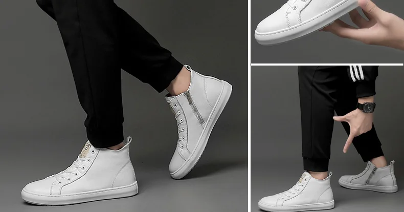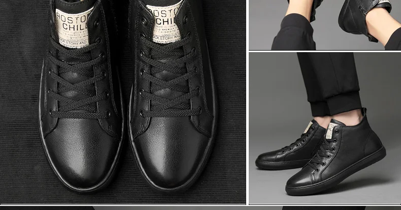 Мужские классические кроссовки из натуральной кожи, черные или белые Повседневные кроссовки с высоким берцем, на плоской подошве, Осень-зима 2020