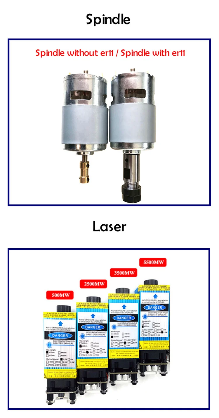 Добавить лазер:CNC3018 PRO + ER11 + 4 зажима + 10 бит + очки + лазер (который вы выбираете)