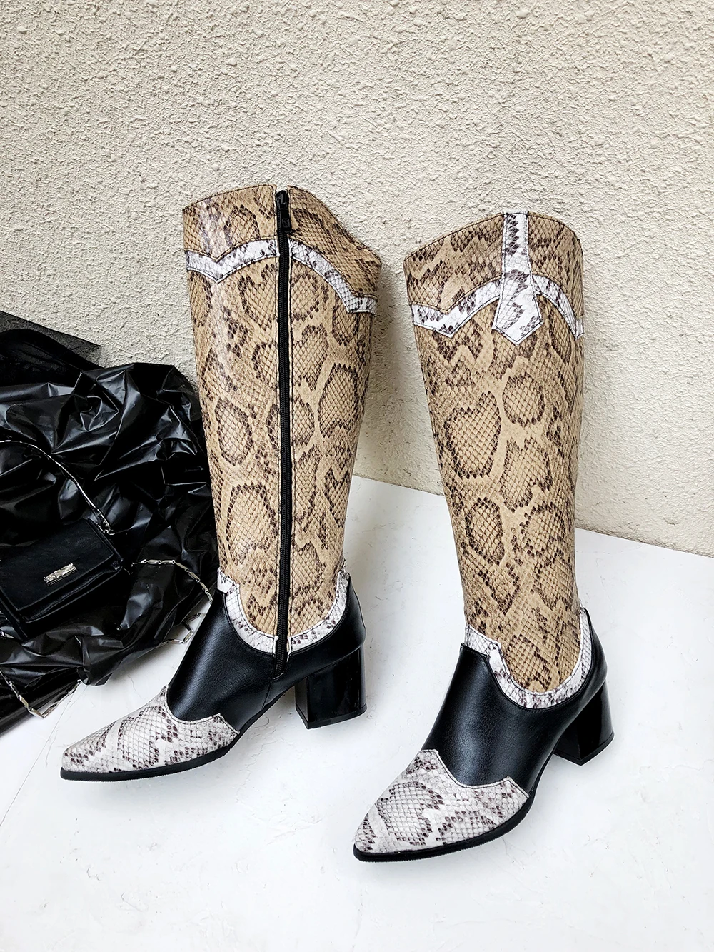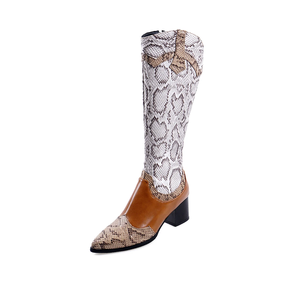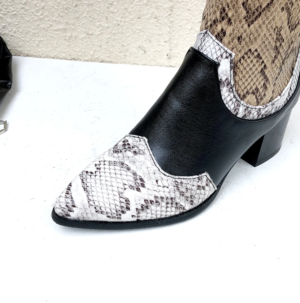 Женские ковбойские ботинки из искусственной кожи, до щиколотки, на высоком каблуке, с змеиным принтом, в западном стиле, 2022, 38, 41, Лидер продаж, женские ковбойские ботинки