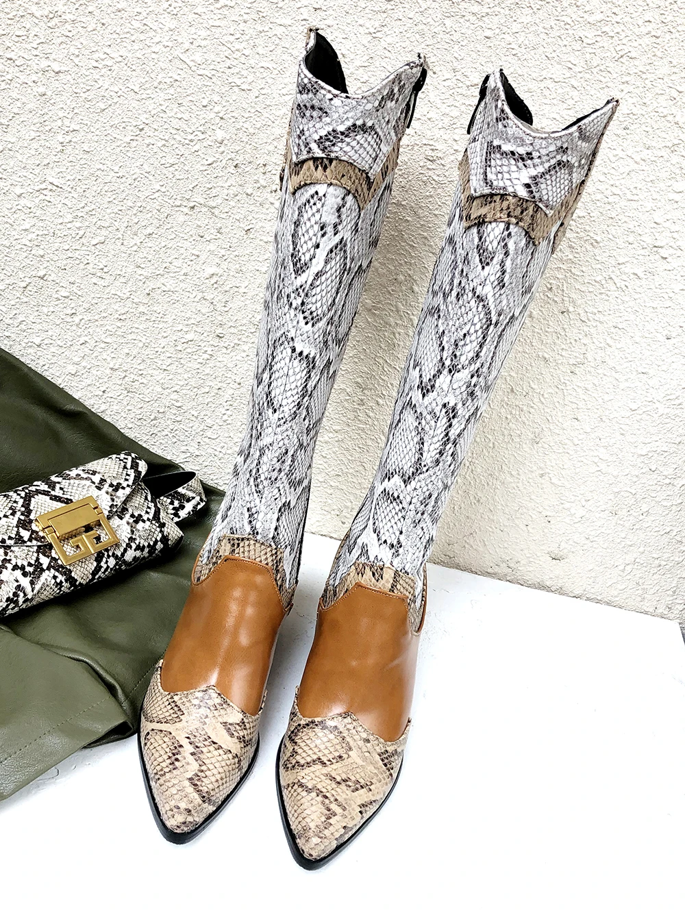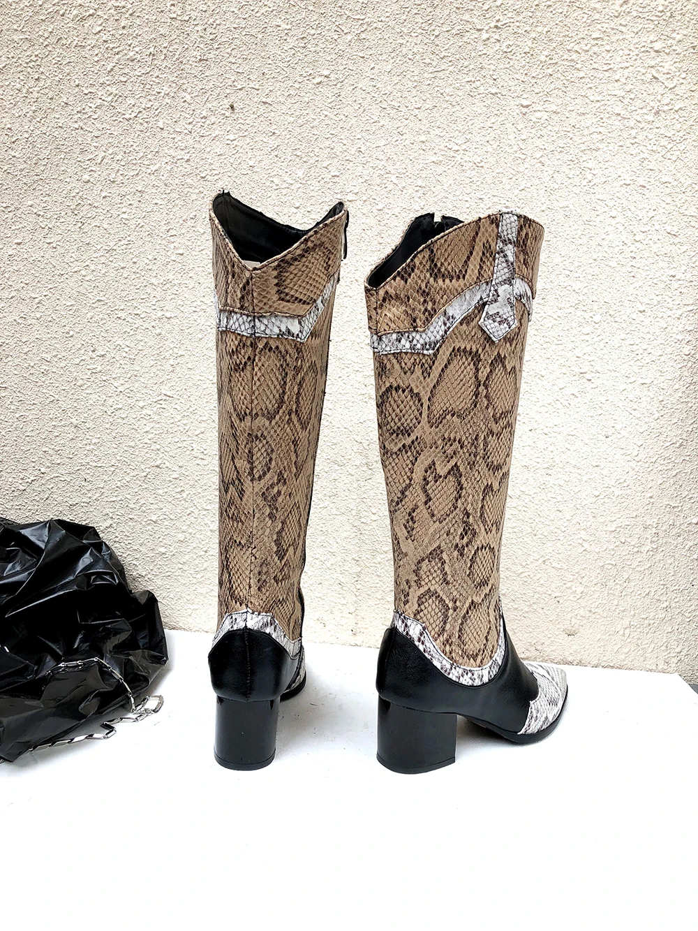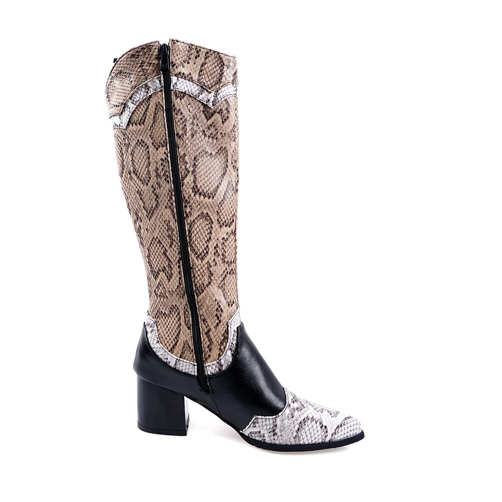 Женские ковбойские ботинки из искусственной кожи, до щиколотки, на высоком каблуке, с змеиным принтом, в западном стиле, 2022, 38, 41, Лидер продаж, женские ковбойские ботинки
