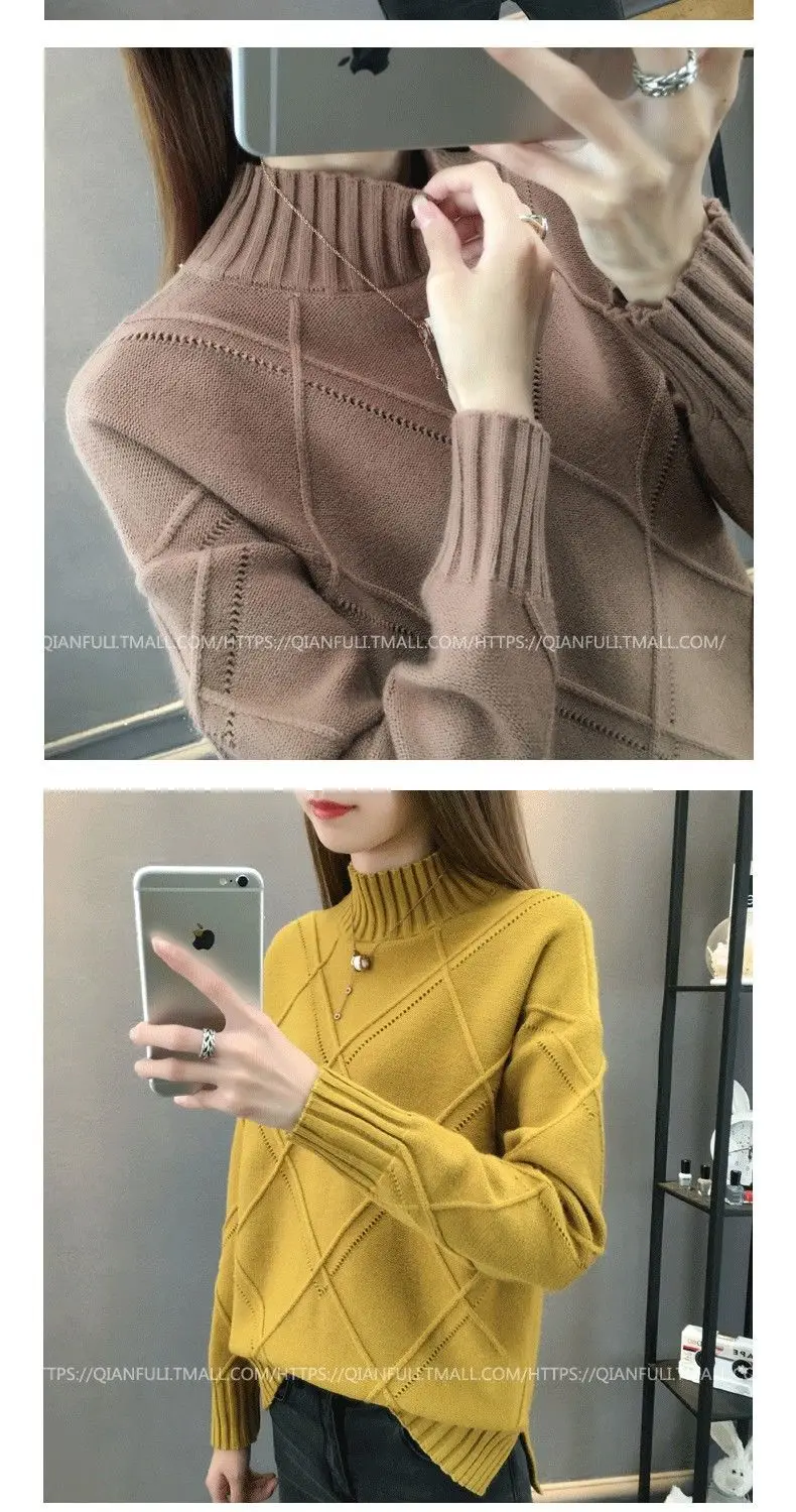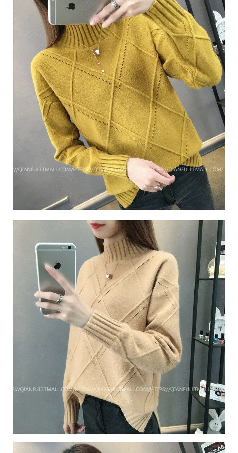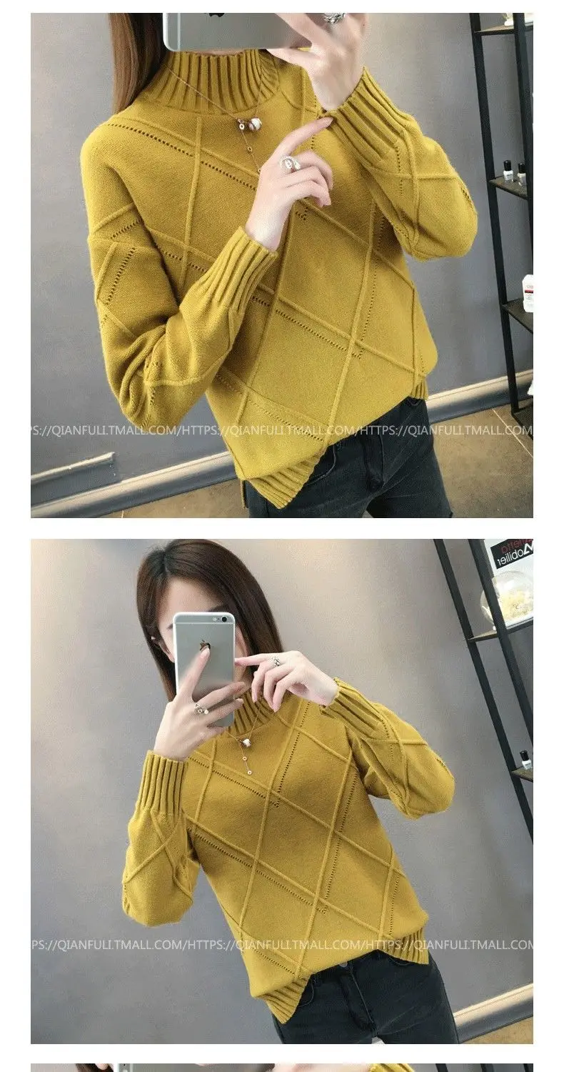 Свитер Женский вязаный с высоким воротом, осень 2019