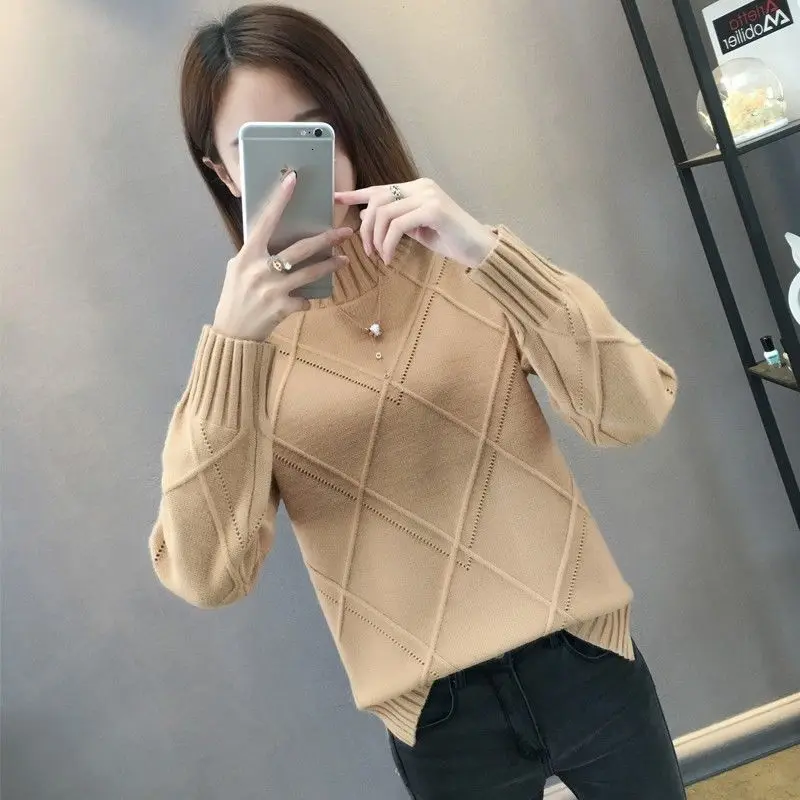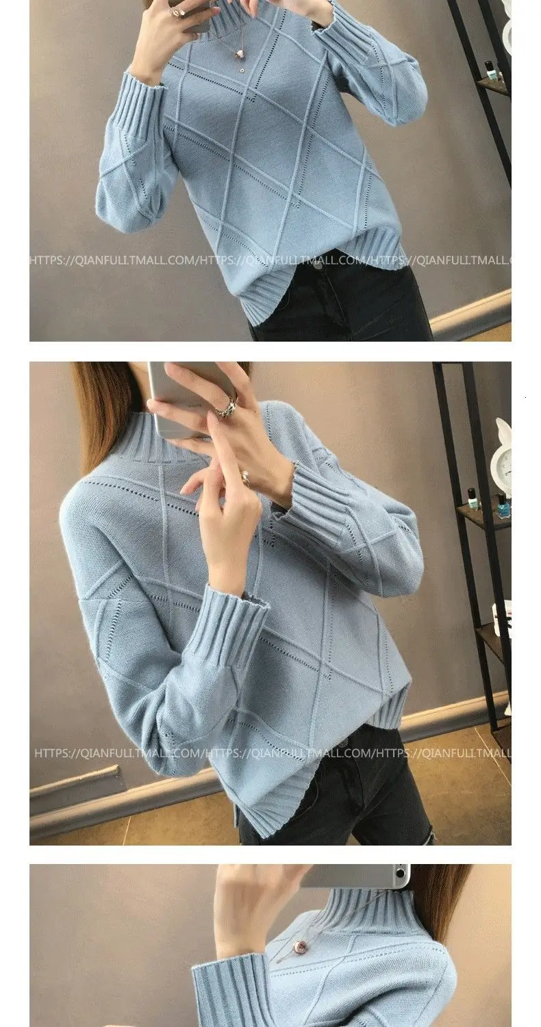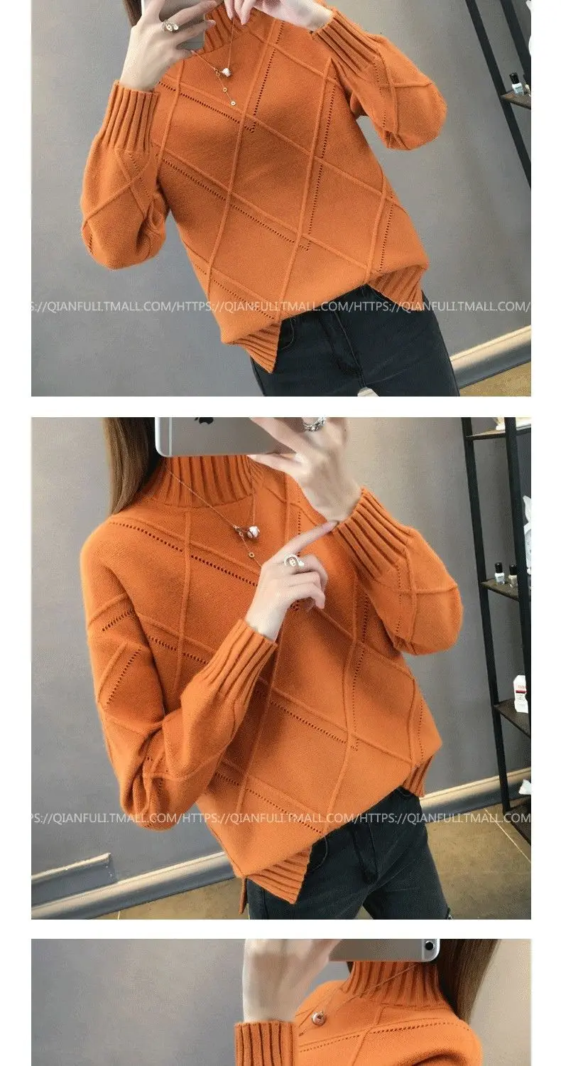 Свитер Женский вязаный с высоким воротом, осень 2019