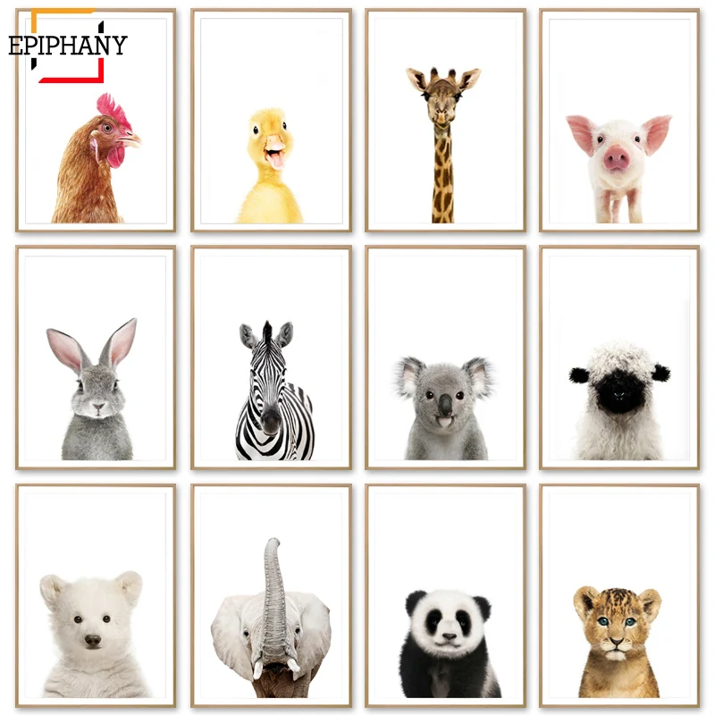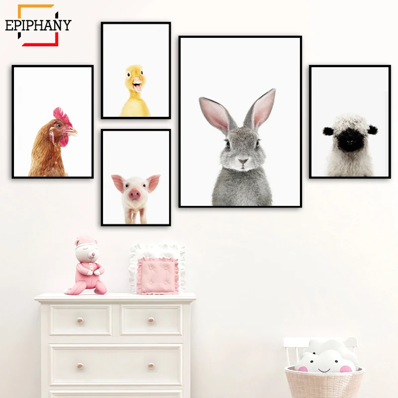Кролик Утка панда, коала, Свинья детская настенная живопись холст скандинавский постер и печать фотографии животных на стену декор для детской комнаты