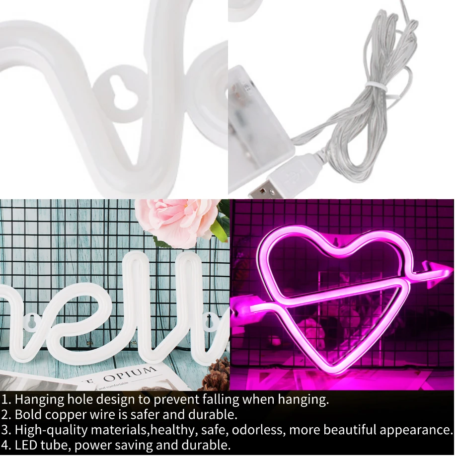 Тип: милый светодиодный неоновый светильникМатериал: пластик + светодиодныйПитание: 3xAA батареи (не входят в комплект) или USBРазмер: как на фотоВходное напряжение: DC12VДлительный срок службы: 50000 часов