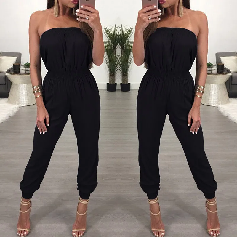 Женский комбинезон без бретелек, черный повседневный комбинезон без рукавов для офиса, одежда для работы, 2019