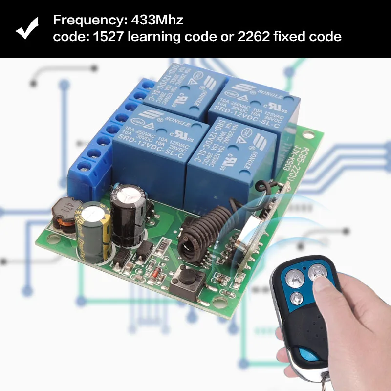 Пульт-передатчик дистанционного управления для гаражаосвещения, 433 МГц, 220 В, 10 А, 4 канала