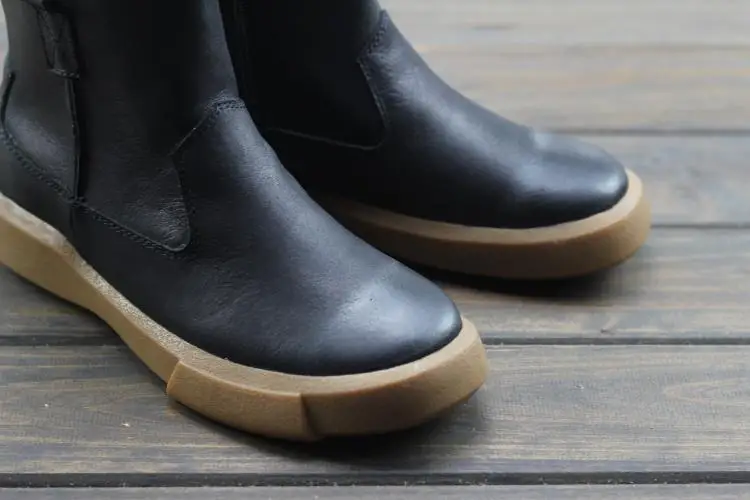 Женские ботильоны из натуральной кожи, черные ботинки с резиновой п...