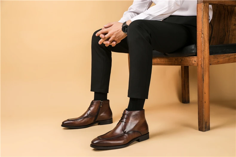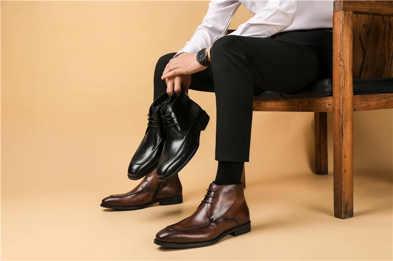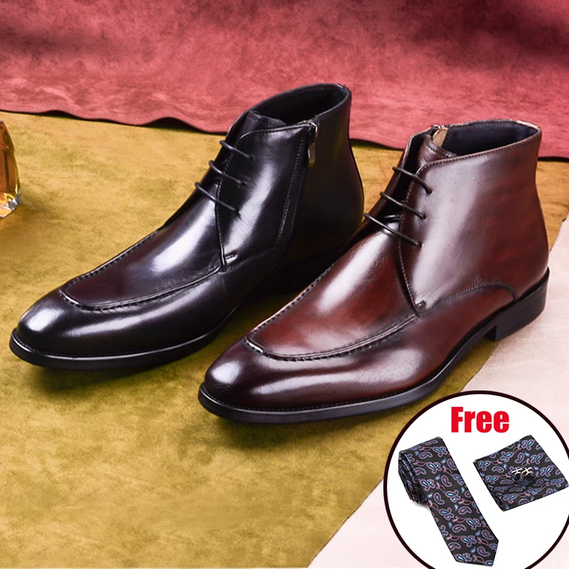 Мужские зимние ботинки челси из натуральной коровьей кожи, ботинки, броги, повседневная обувь на плоской подошве, удобные качественные классические ботинки на шнуровке, 2020