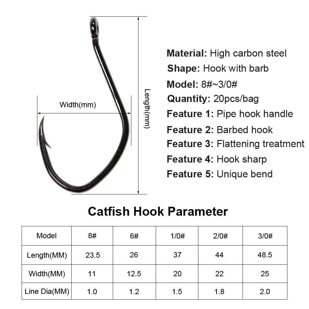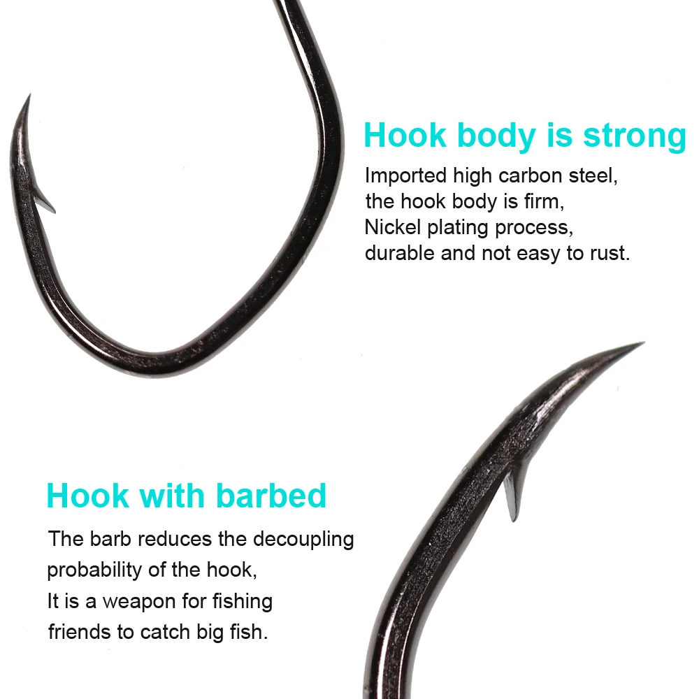 100 шт. Пресноводная Рыбалка в соленой воде, Высокоуглеродистая сталь, колючий крючок для сома, большой Baithook для ловли тунца, окуня 8 6 10 20 30